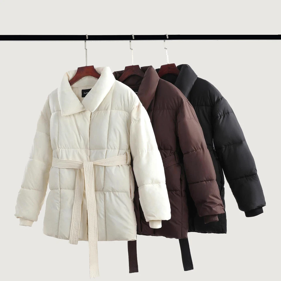 Premium Women Mid Length Belted Puffer Jacket Women Casual Coat, Water Repellent Women Winter Ladies Classic Quilted Outerwear Coat Big Pocket