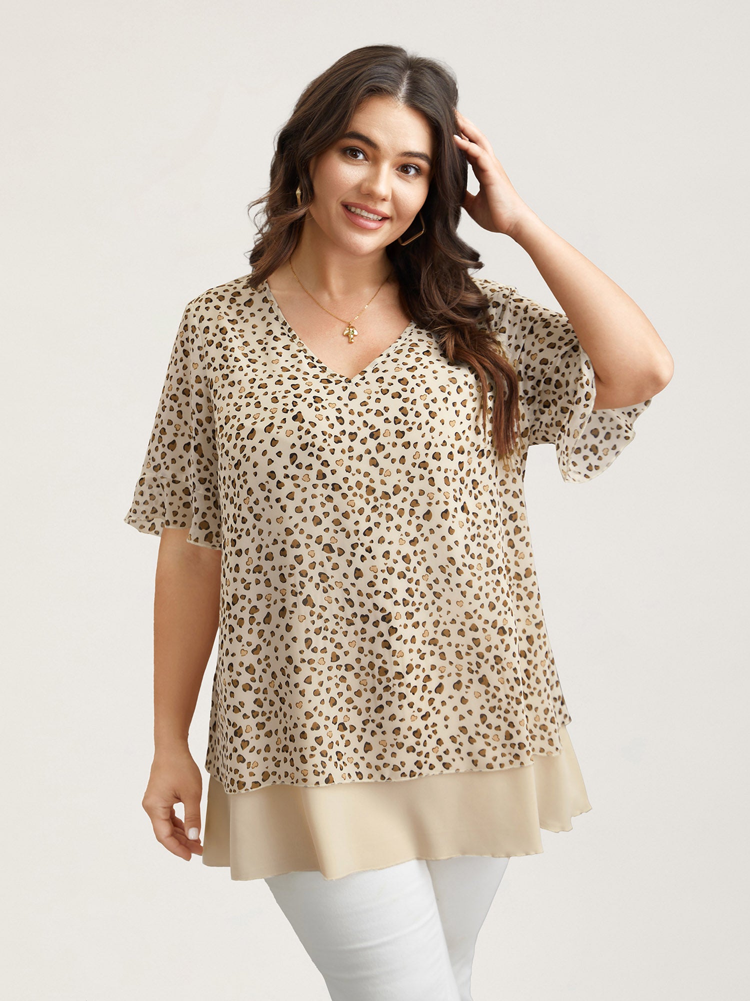 Polka Dot Print Ruffled V-Neck Layered Shirt