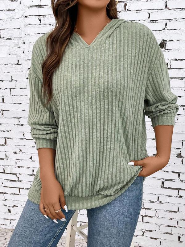 Plus Size Plain Textured Drop Shoulder Hoodie, Lady Casual Comfort Long Sleeve Pullover for Spring & Fall, Country Outfits, Women's Plus Size Clothes for Daily Wear, Going Out Top, Spring Knitted Hoodie