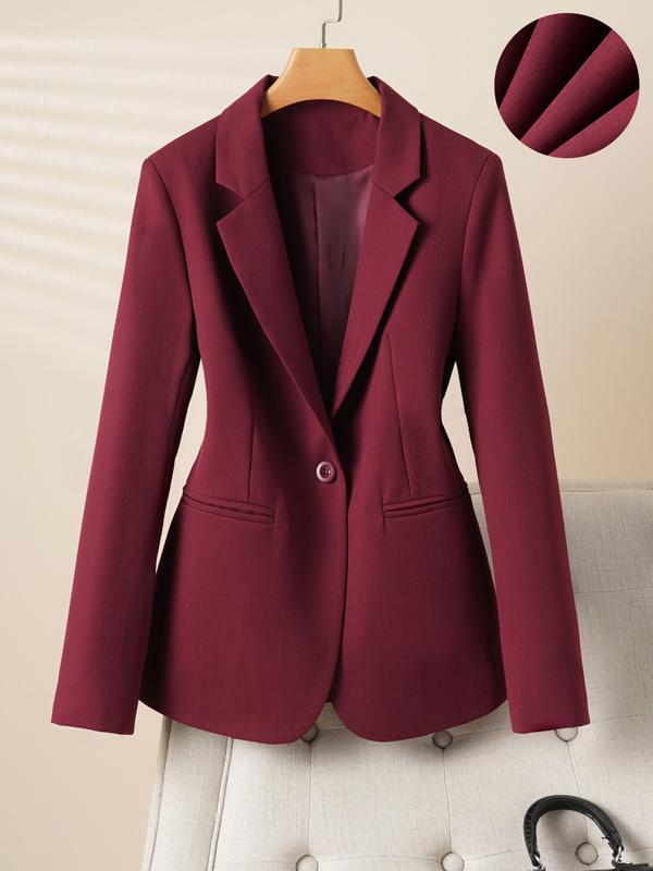 Elegant Women's Blazer Jacket, Fitted Woven Fabric, Long Sleeve Plain Design, Perfect for Office & Spring Autumn Wear, Trendy Blazer