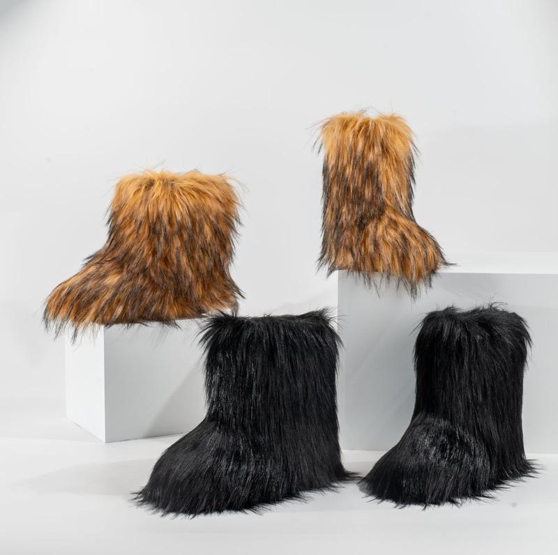 IUV Women's Fluffy Faux Fur Boots Snow Boots for women Winter Round Toe Suede Snow Women's mid-calf Boots Outdoor Indoor Flat Boots Comfy Plush Warm Short Boots Brown Black Pink White Boots Y2k Boots