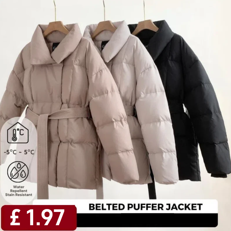Mid Length Belted Puffer Jacket Womenswear, Winter Warm Classic Quilted Outerwear, Button Front Full Zip Long Sleeve Coats with Deep Pockets #FallFreshness