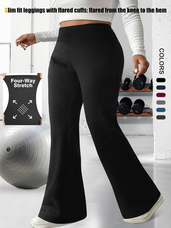 Plus Size Solid High Waist Flare Leg Leggings, Casual Comfy High Stretch Bell Bottom Trousers for Daily Wear, Women's Bottoms for Summer