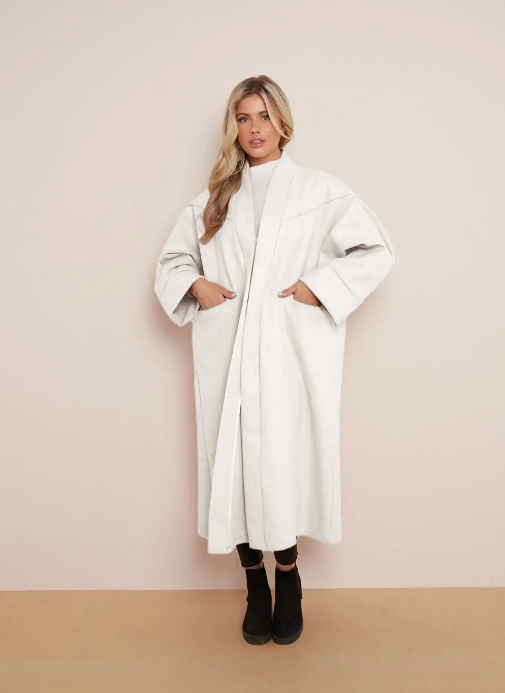 Solid Color Exposed Stitches Pocket Oversize Thermal Coat, Plain Winter Open-Front Outerwear Jacket,Basic Womenswear