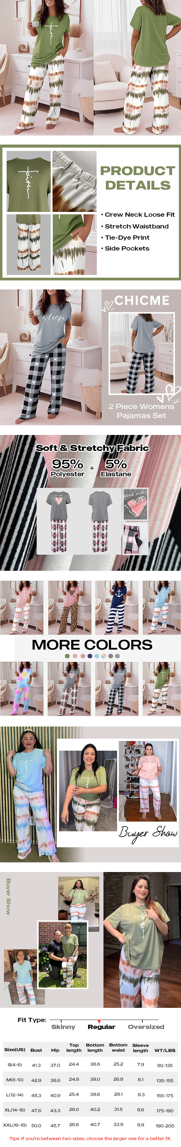 2 Pieces Outfit Letter Print Round Neck Short Sleeve Top And Tie Dye Print Elastic Waist Loose Fit Pants Set Casual Pajamas Set
