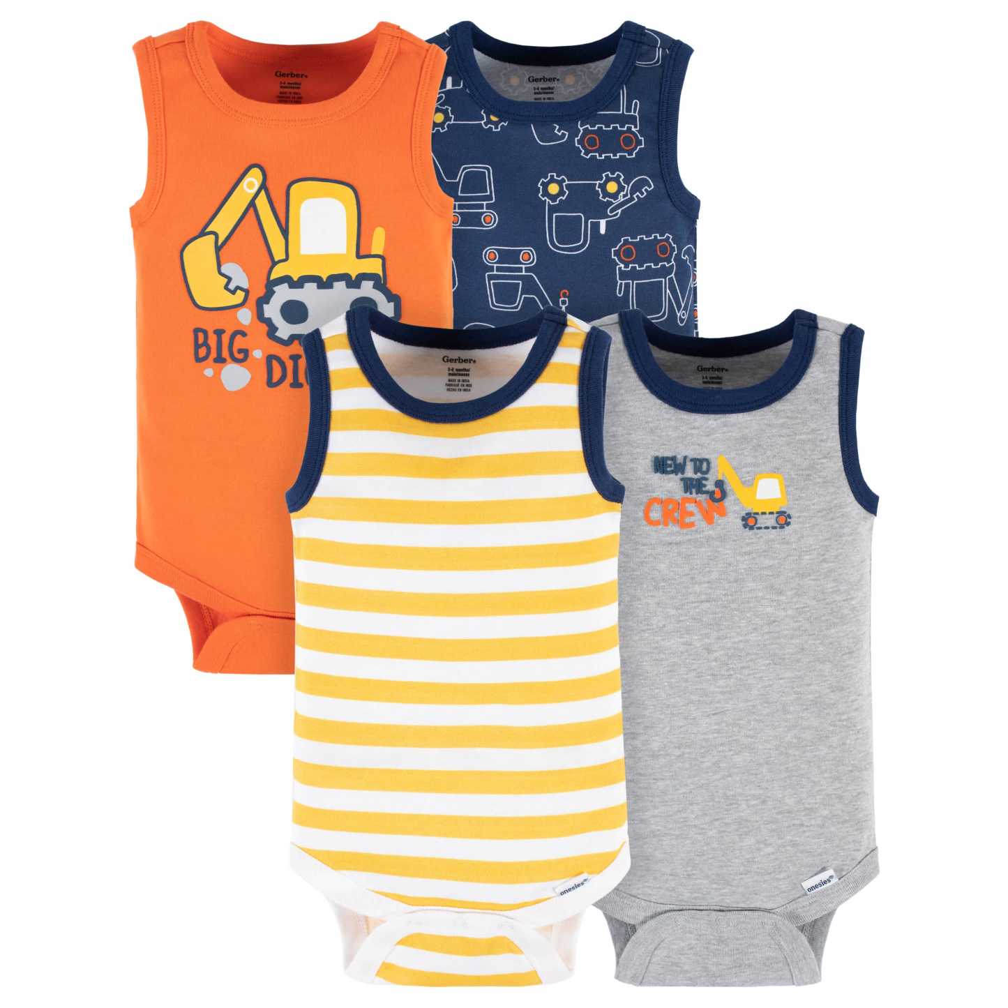 4-Pack Baby Boys Big Digger Tank Onesies® Bodysuits