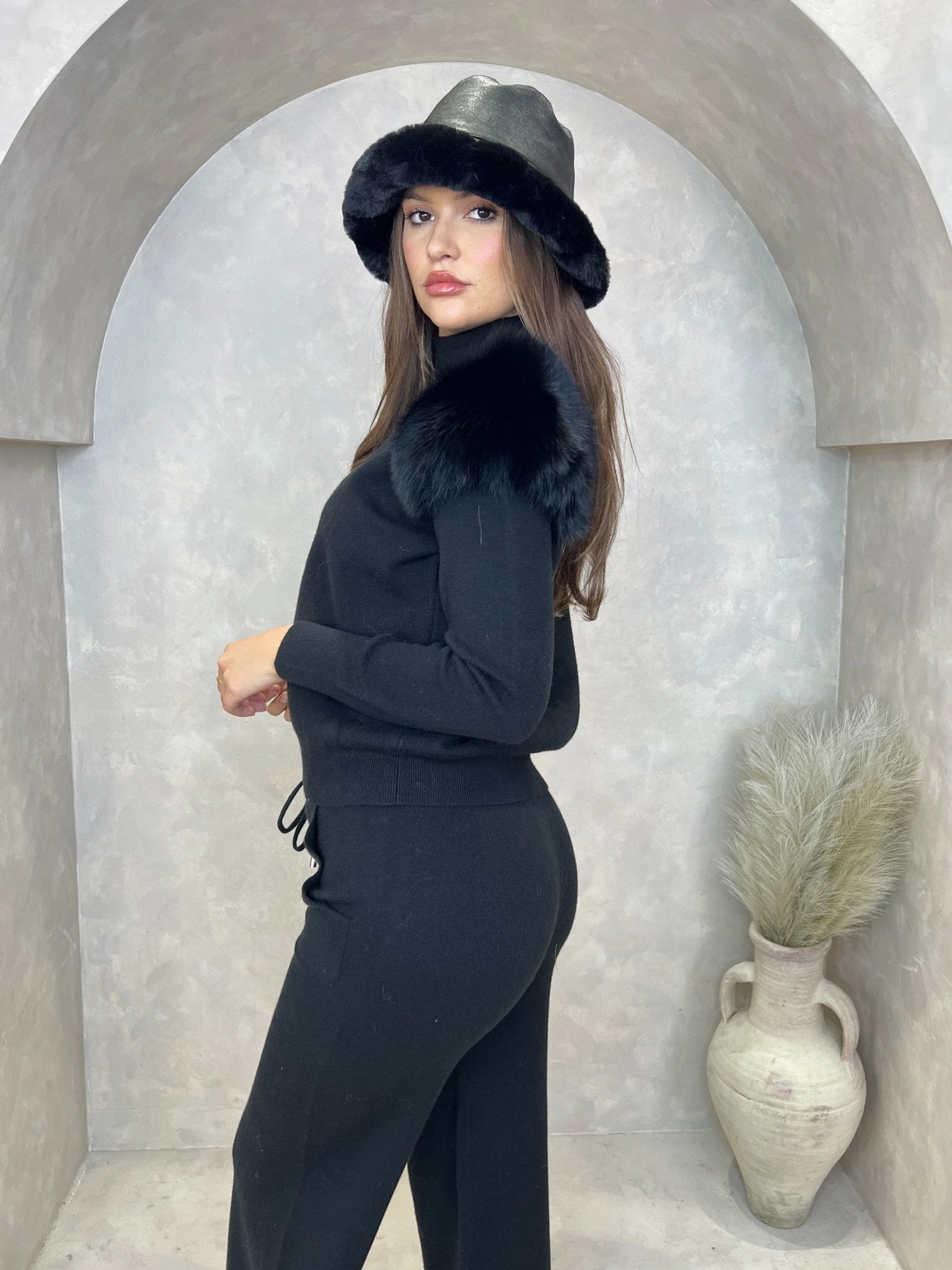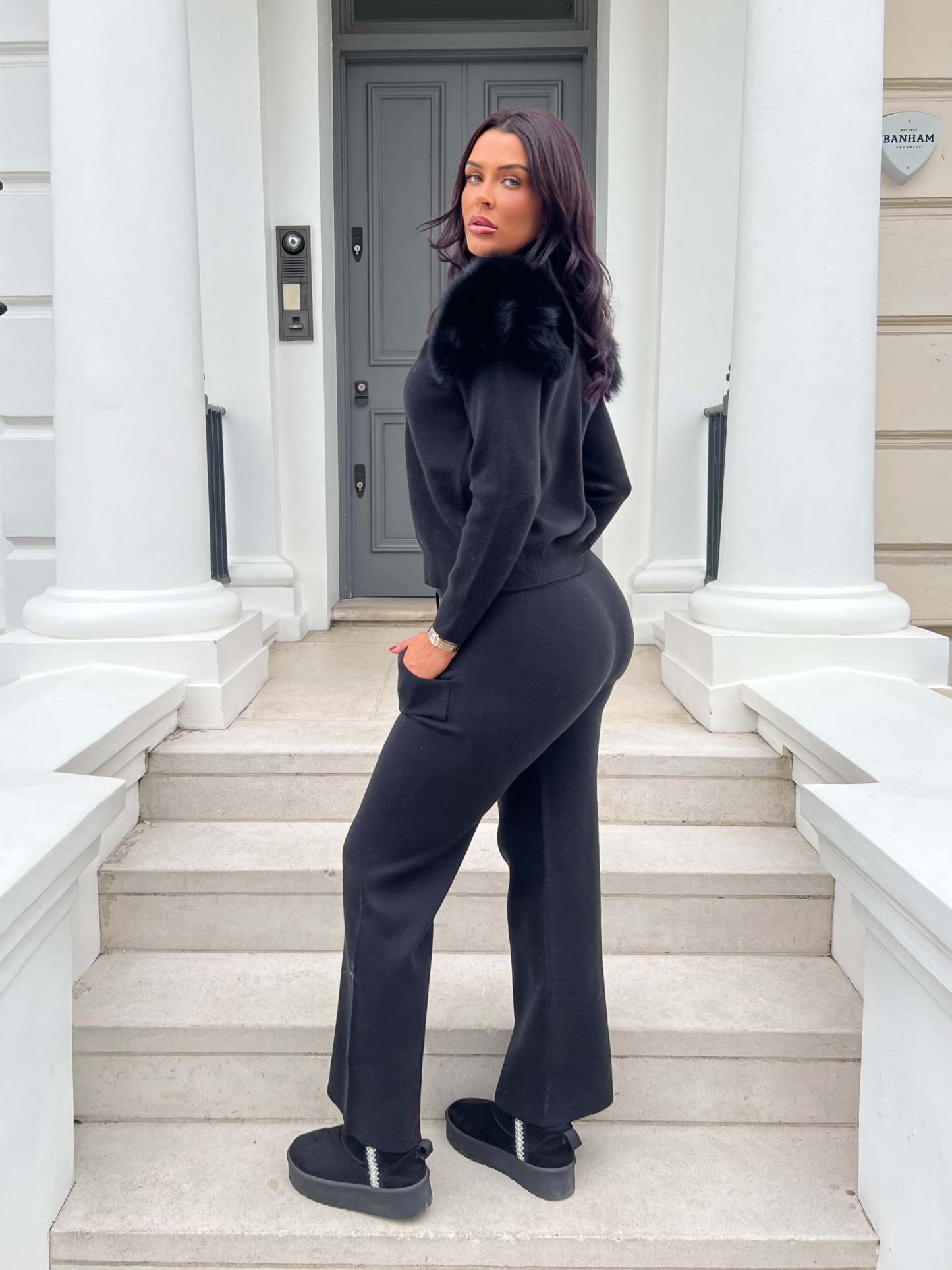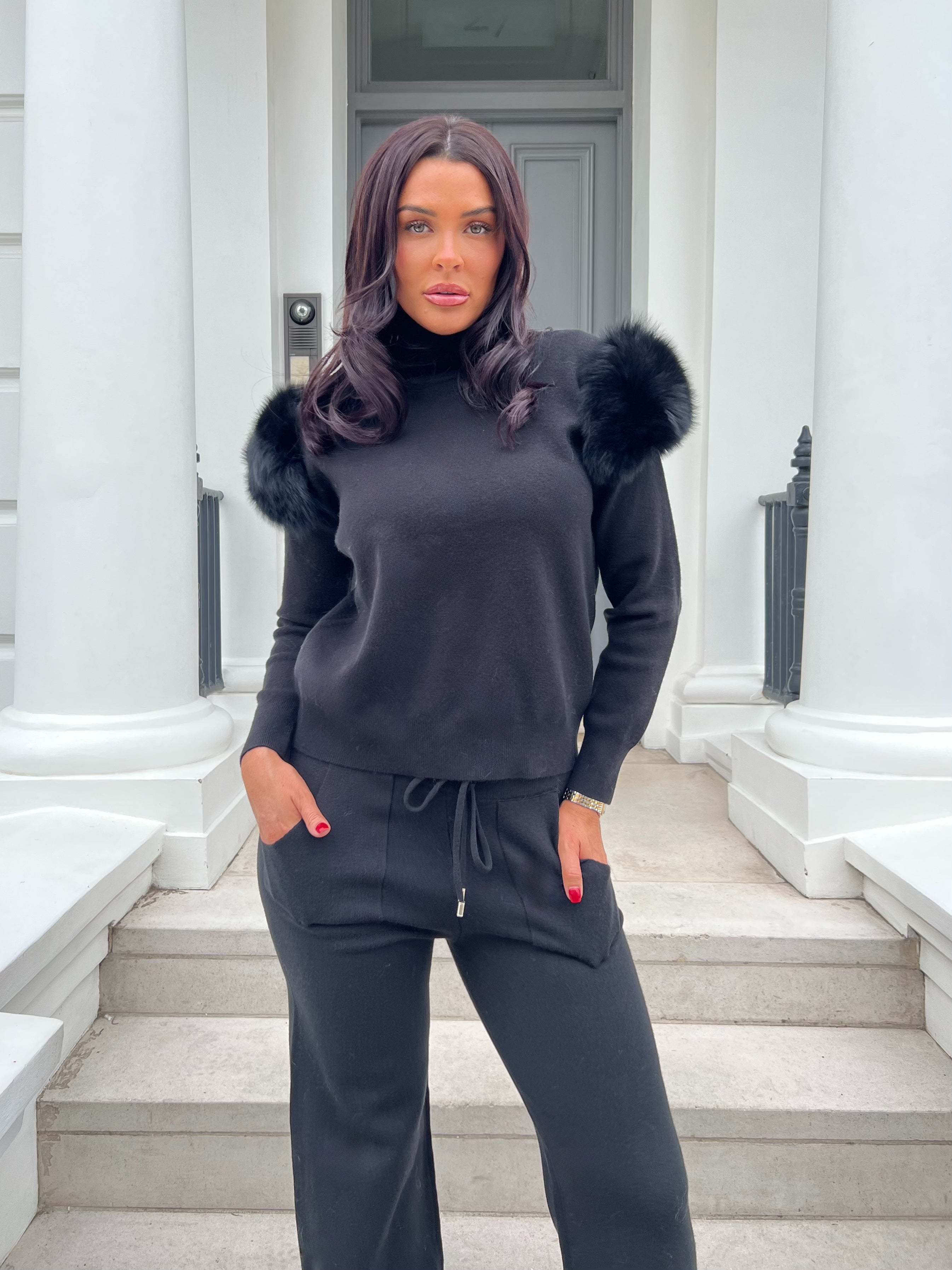 Stay cozy and stylish with our Luxury Fur Roll Neck Wide Leg Tracksuit. Made with premium quality, extra soft fabric, this tracksuit features a fox fur shoulder and a roll neck for added warmth. The wide leg trousers add a touch of luxury to this must-have loungewear.