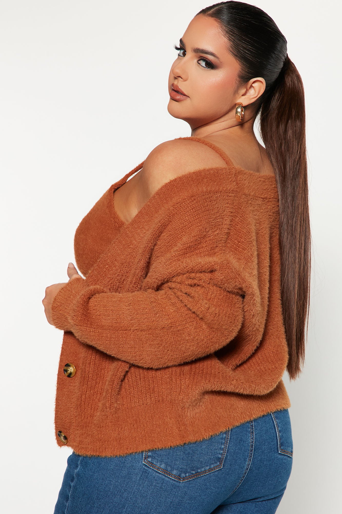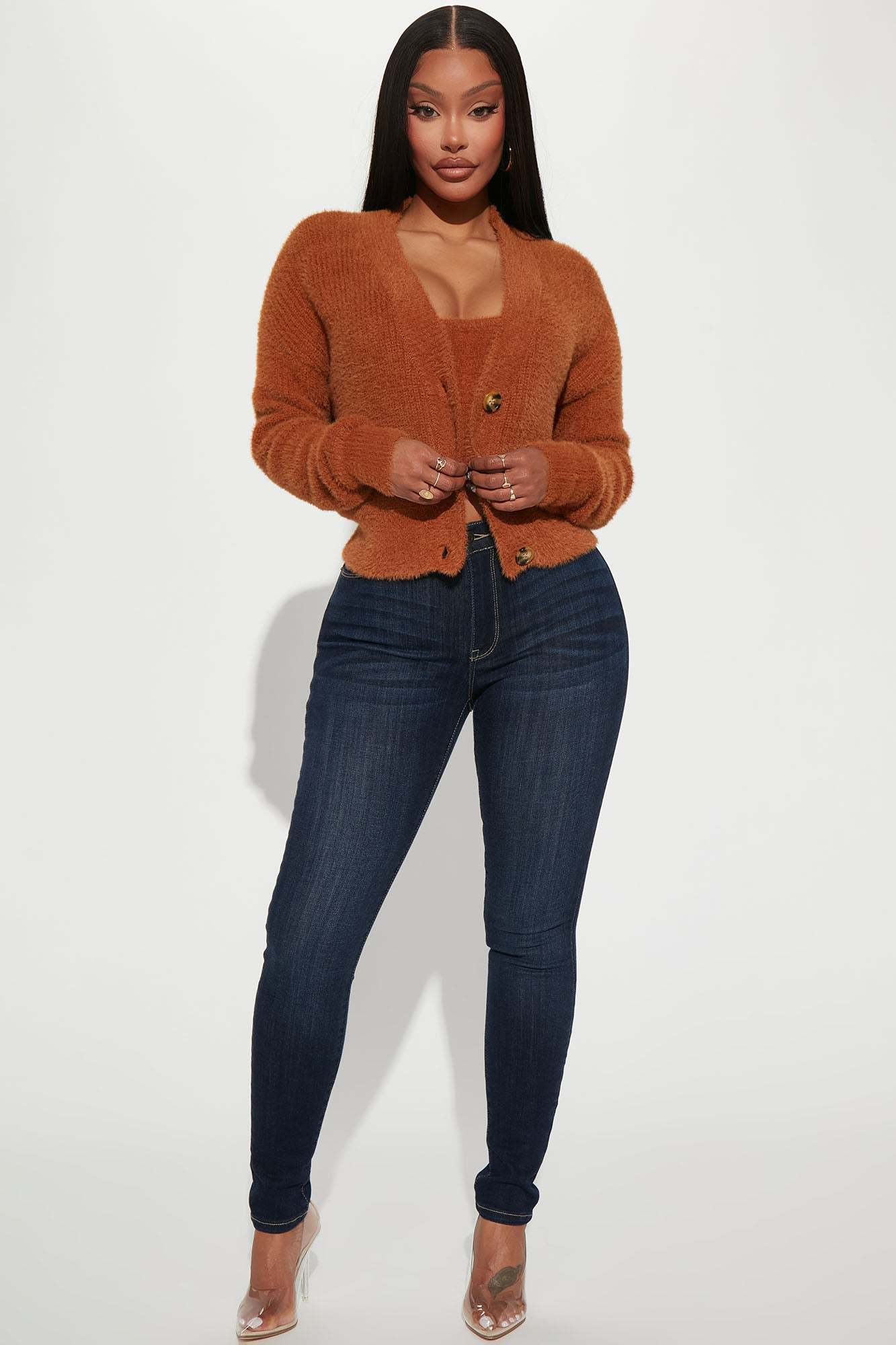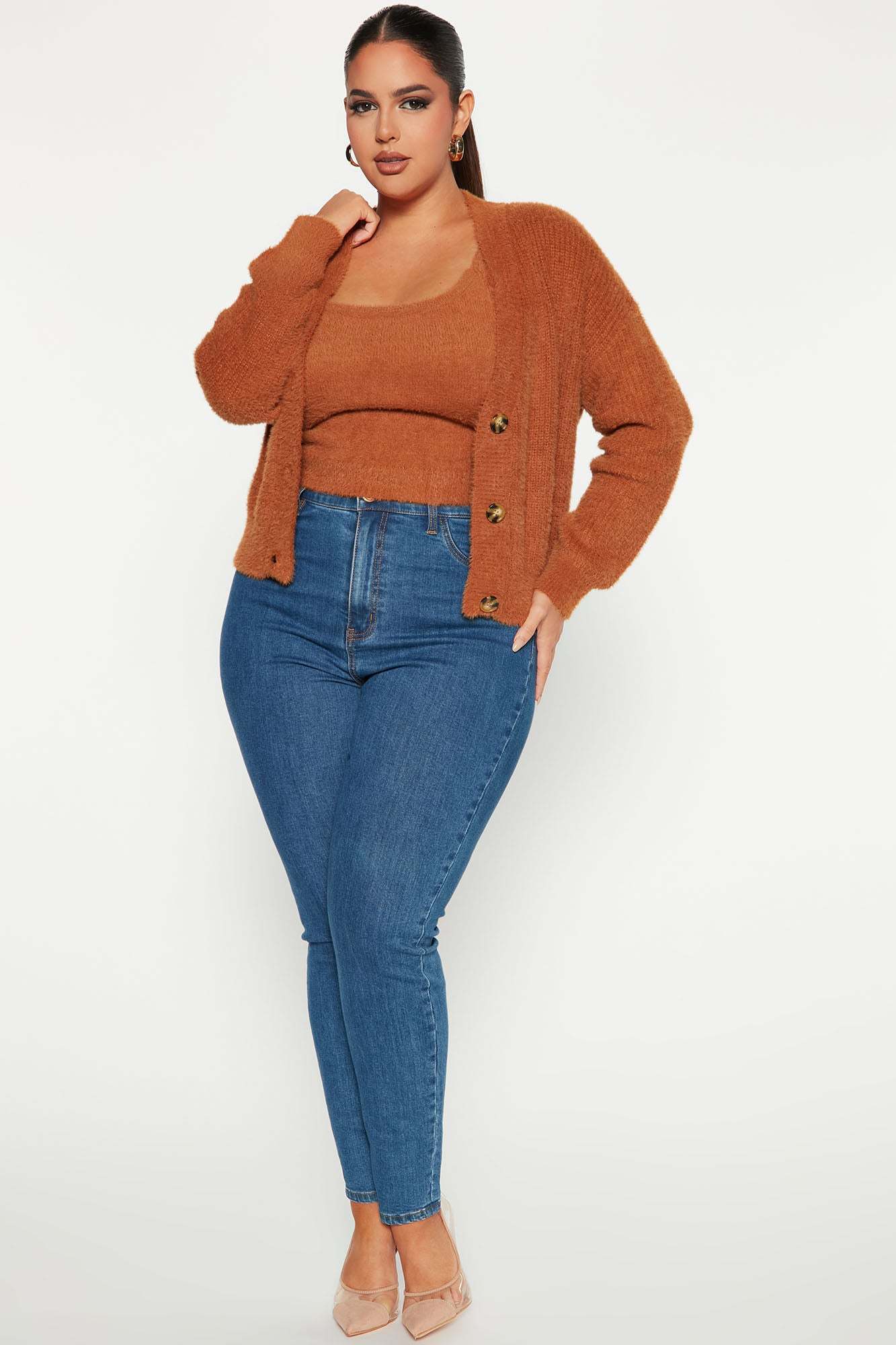 Can't Stop Love Fuzzy Sweater Set - Chestnut