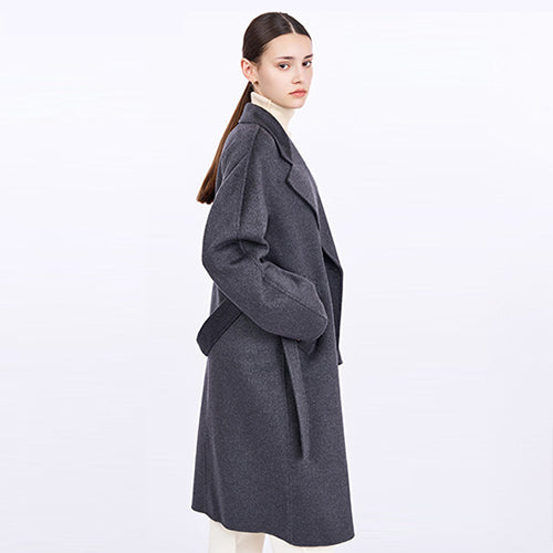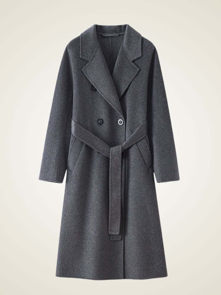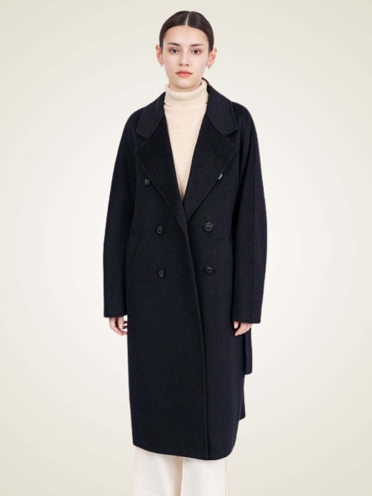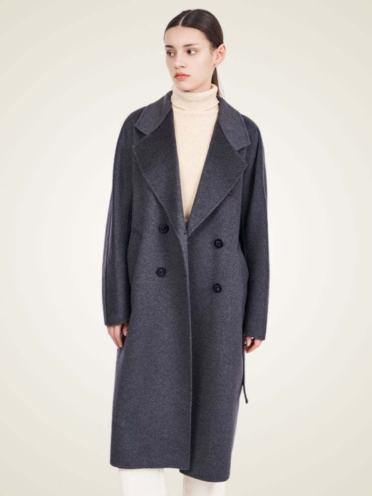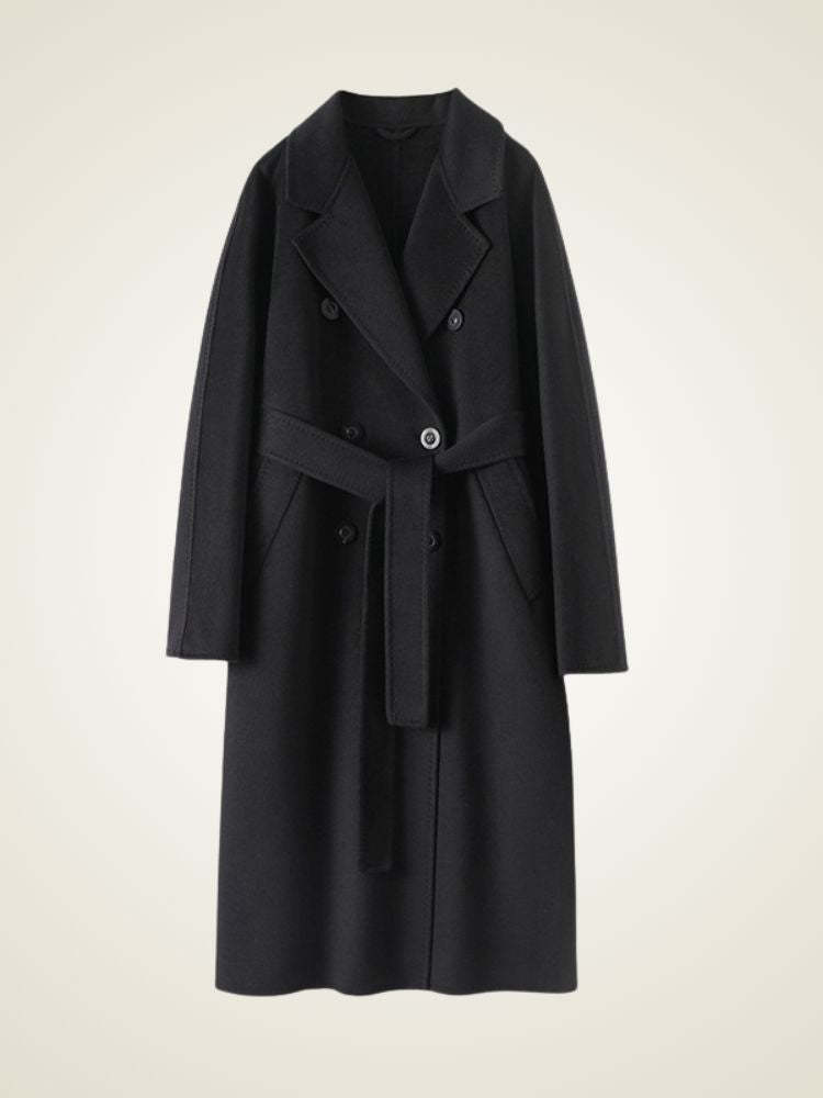 Wrap yourself in the refined luxury of the Double-Breasted Cashmere Coat. Its structured silhouette, enhanced by a tailored lapel and a cinched waist, creates an effortlessly elegant look. The double-breasted closure and deep pockets offer both style and practicality, making it a timeless staple in any wardrobe.