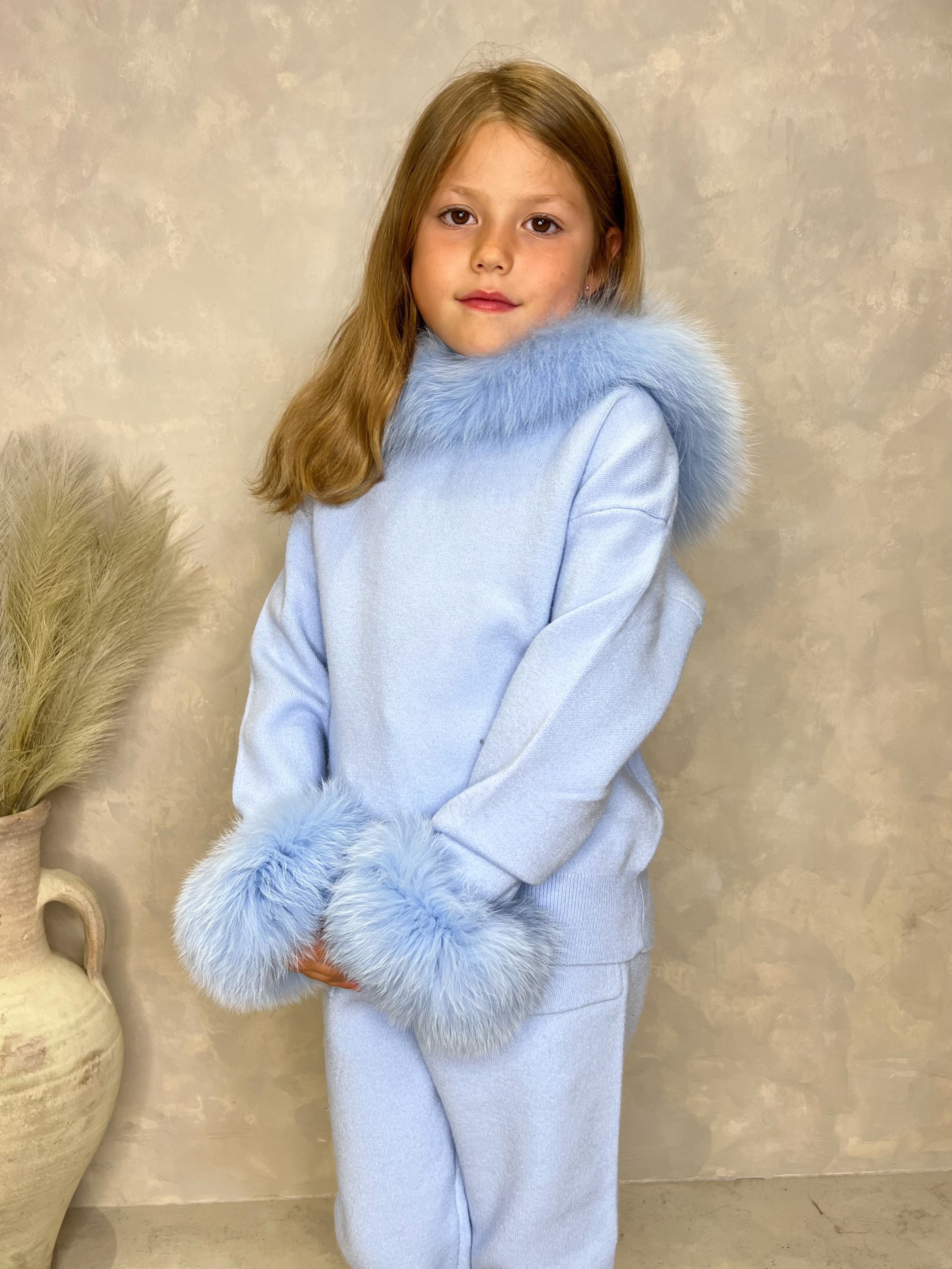 Enhance your child's wardrobe with our Kids Luxury Fur Trim Hood & Cuff Tracksuit. The fox fur trim on the hood and cuffs adds a touch of luxury, while the cuffed leg and drawstring waist provide comfort and style. Made with 100% pure fox fur, this tracksuit is both fashionable and cozy.