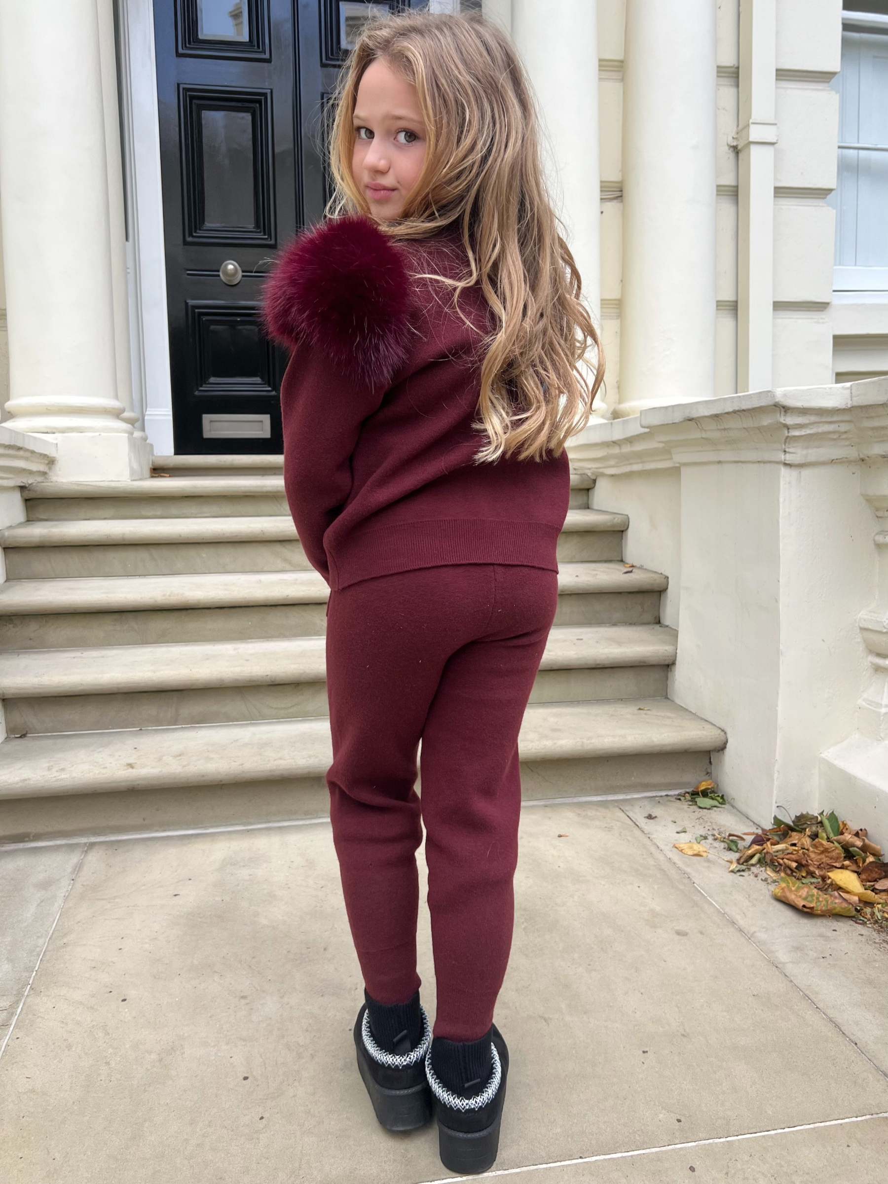This premium faux fur tracksuit features cosy faux fur shoulders and a stylish roll neck. The joggers come with a drawstring for a comfortable fit. Keep your kids warm and fashionable with this tracksuit.