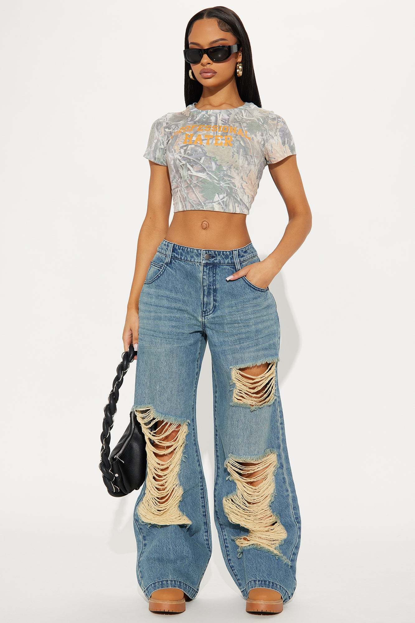 Cleo Ripped Wide Leg Jeans - Vintage Wash