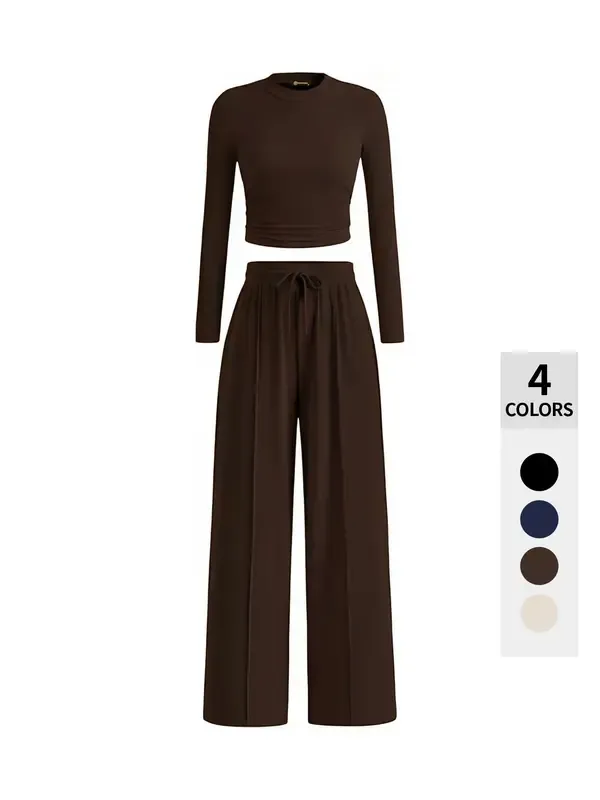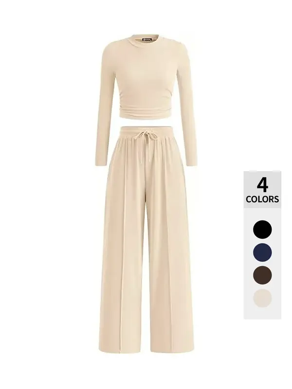 Darong Women's 2 Piece Sets 2025 Fall Outfits Long Sleeve Wide Leg Tracksuits Casual Lounge Set Matching Sets