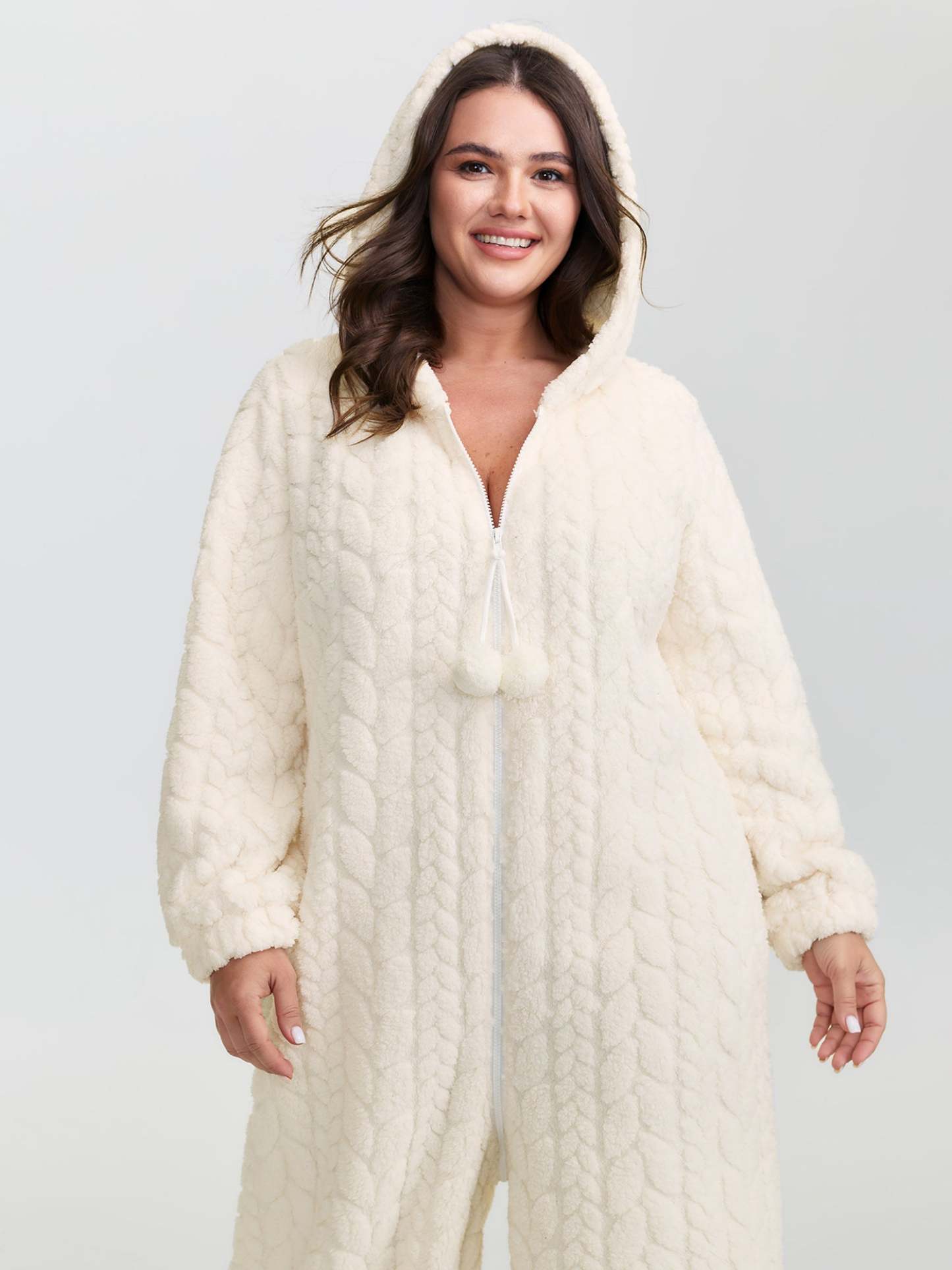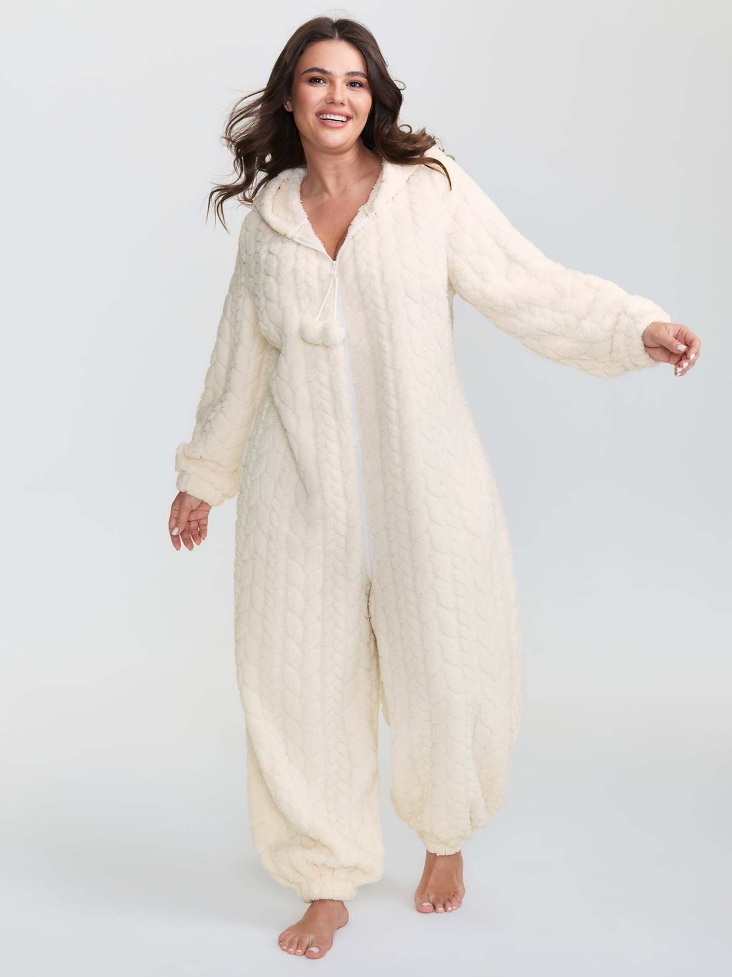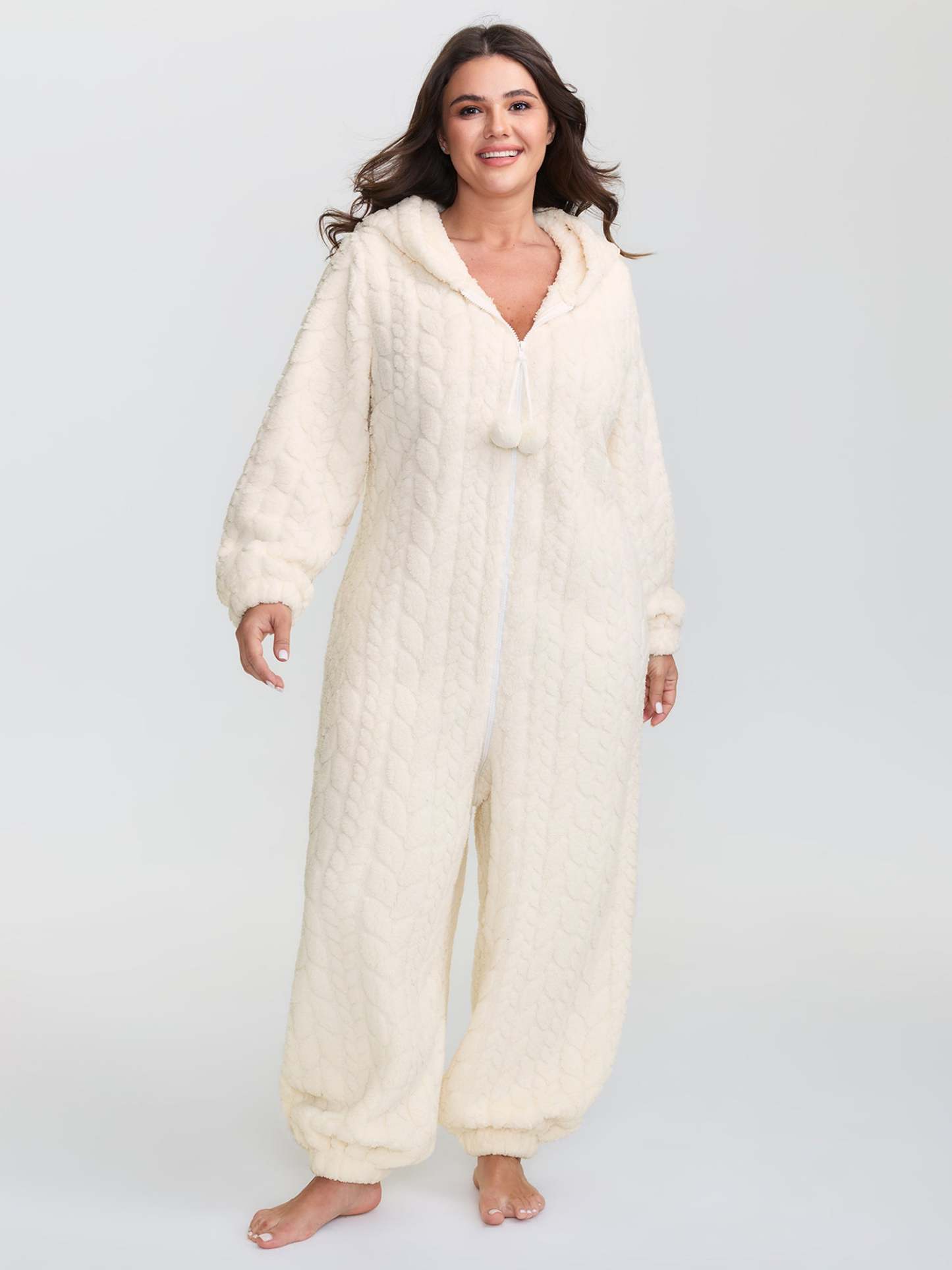 Fleece Zipper Hooded Sleep Jumpsuit