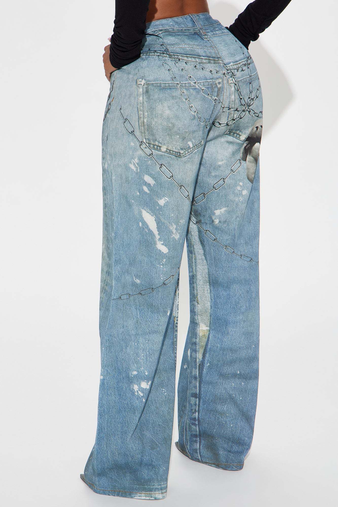 It's All An Illusion Chain Printed Denim Baggy Jeans - Medium Wash