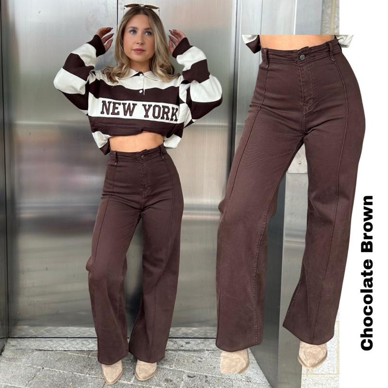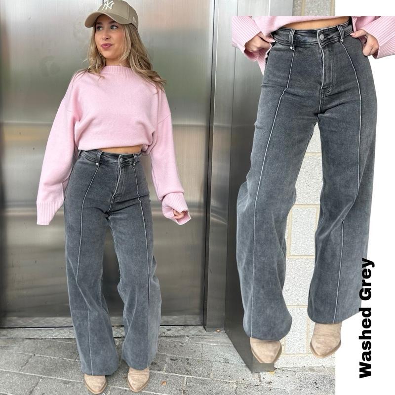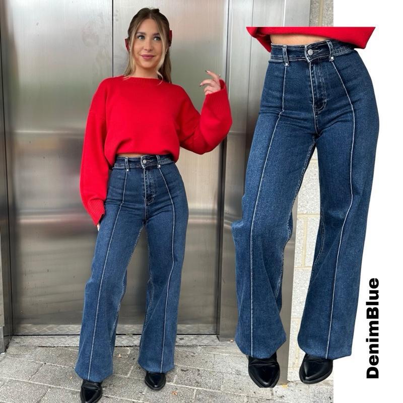 WESTWARDROBE Autumn Wide Leg Stretchy Jeans 32inch Leg Lining Detail Pockets on Back Available in Multiple Colors