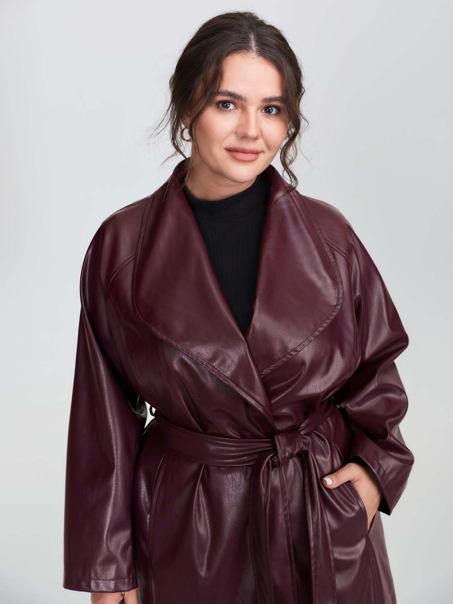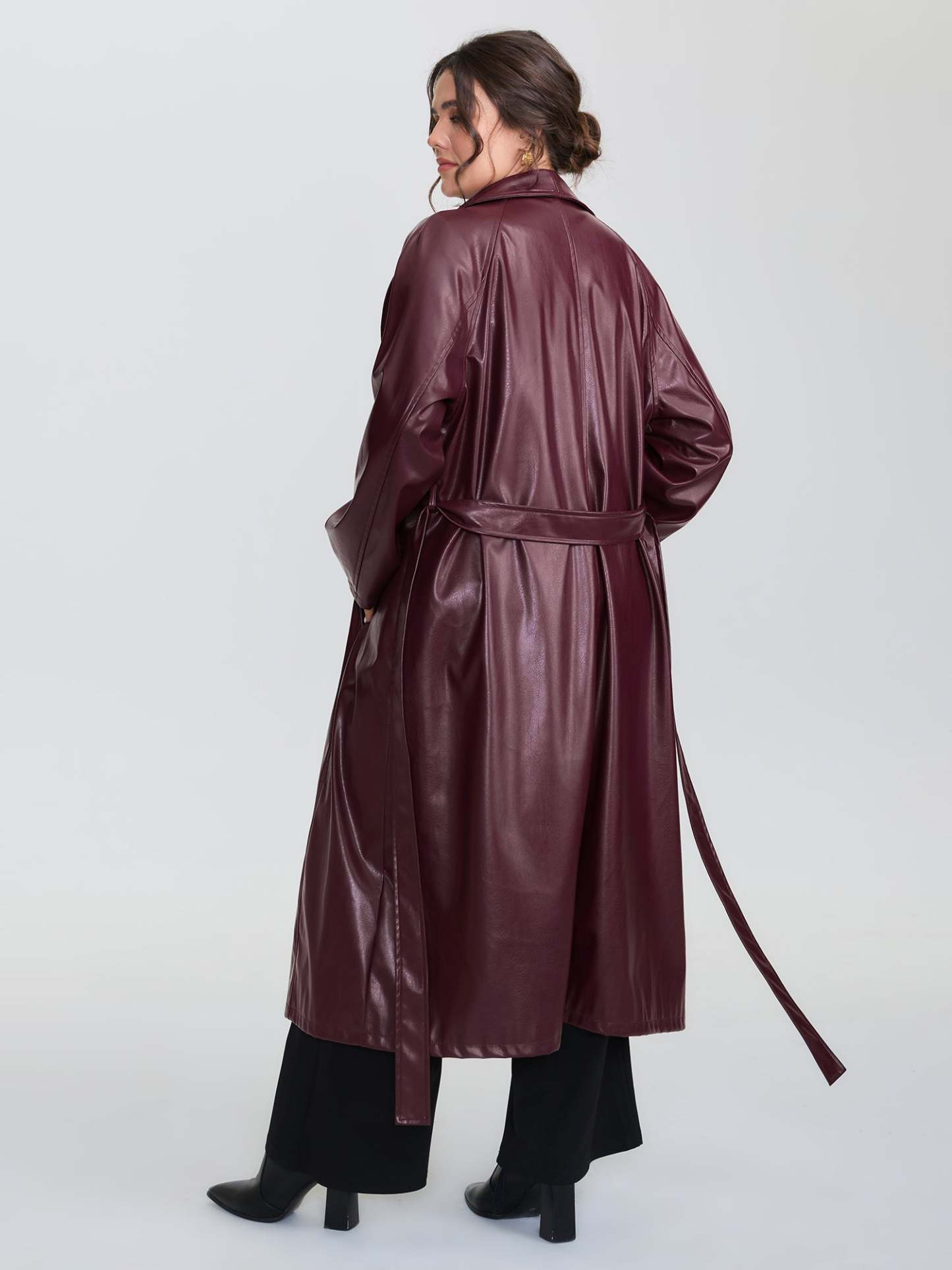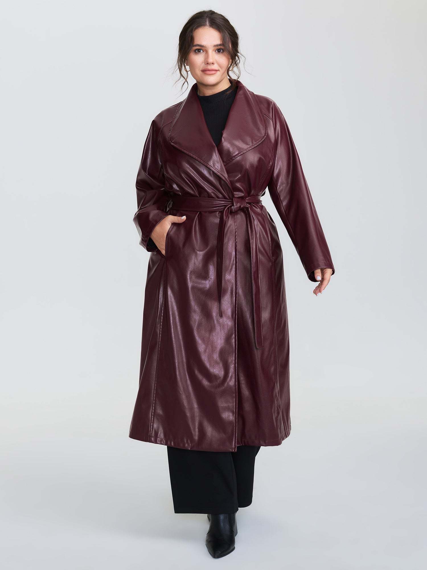 Leather Belted Waist Long Coat