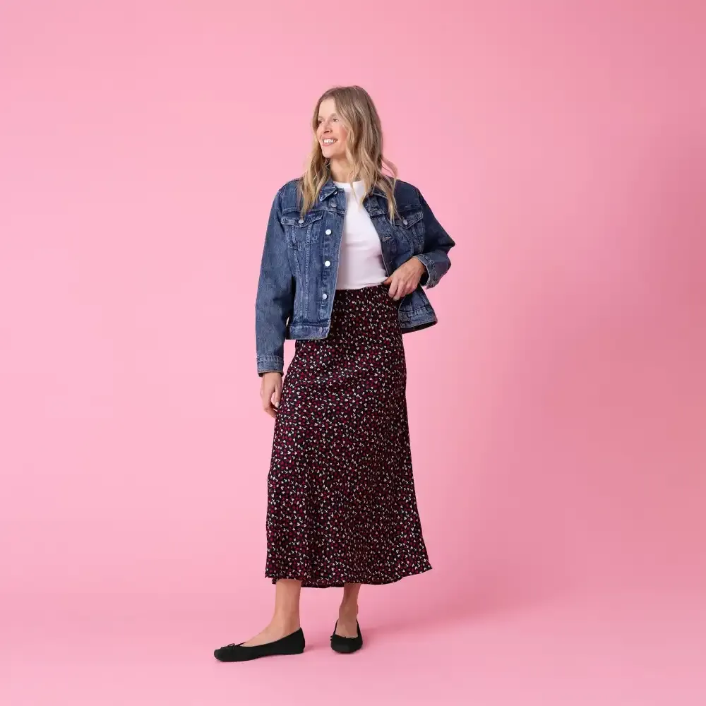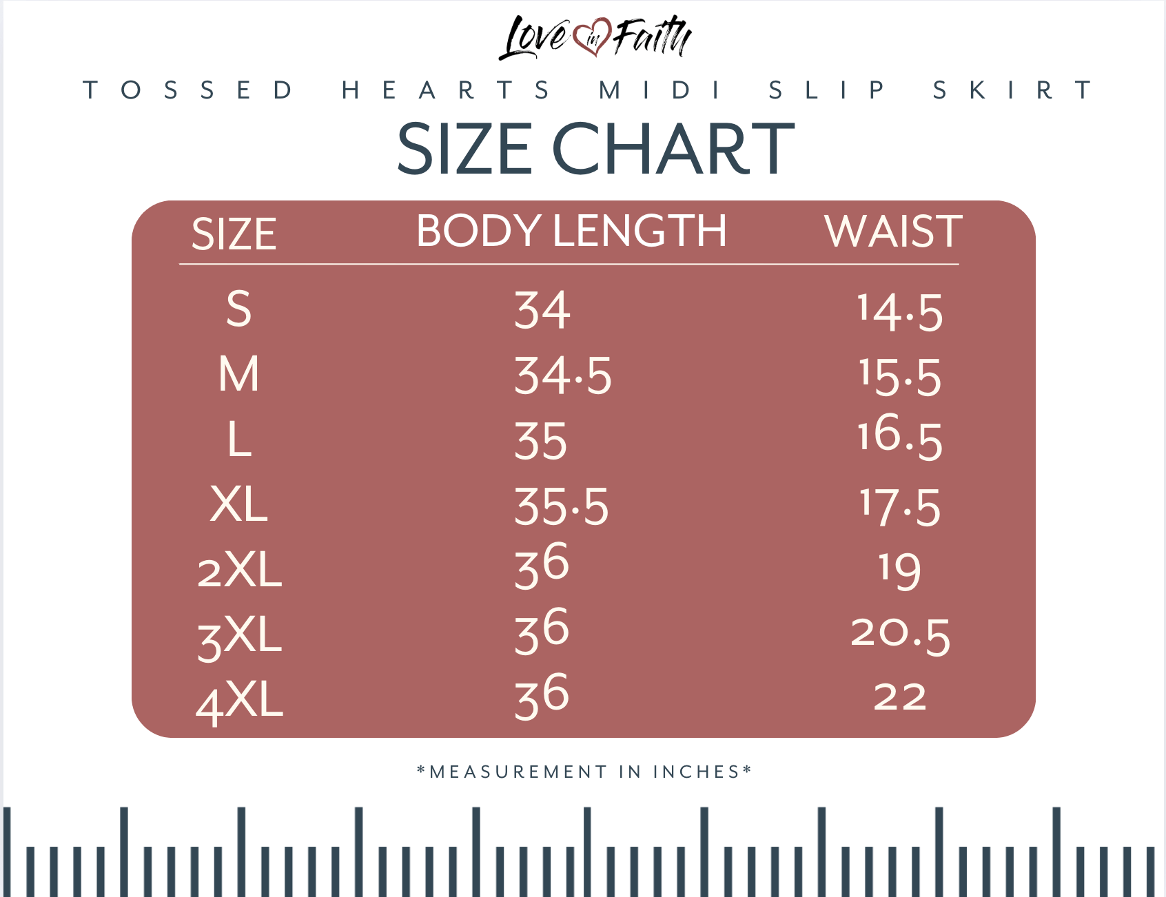 Love Never Fails Tossed Hearts Midi Slip Skirt