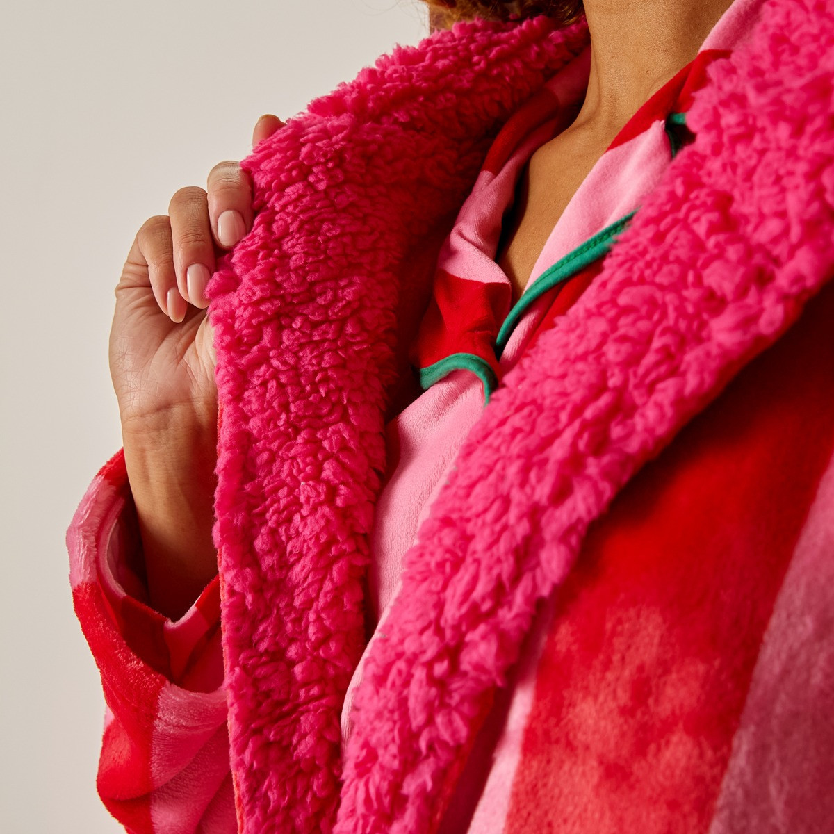 Introducing the OHS Flannel Fleece Candy Stripe Dressing Gown, designed to bring a sense of calm and coziness to your daily routine. Crafted from ultra-soft flannel fleece, this plush gown provides a warm, gentle embrace that’s perfect for early mornings, relaxed evenings, or simply unwinding at home. The candy stripe design adds a sweet and playful touch, while the sherpa-lined hood delivers an extra layer of warmth and comfort. Whether you're getting ready for the day or settling in for the night, this dressing gown offers the perfect blend of softness, style, and everyday practicality.