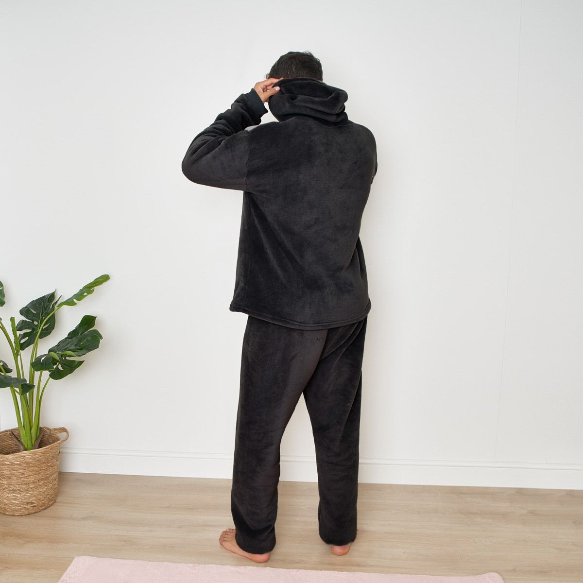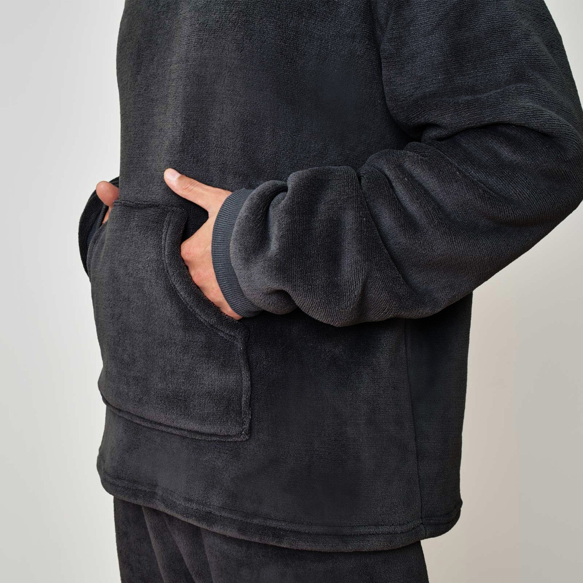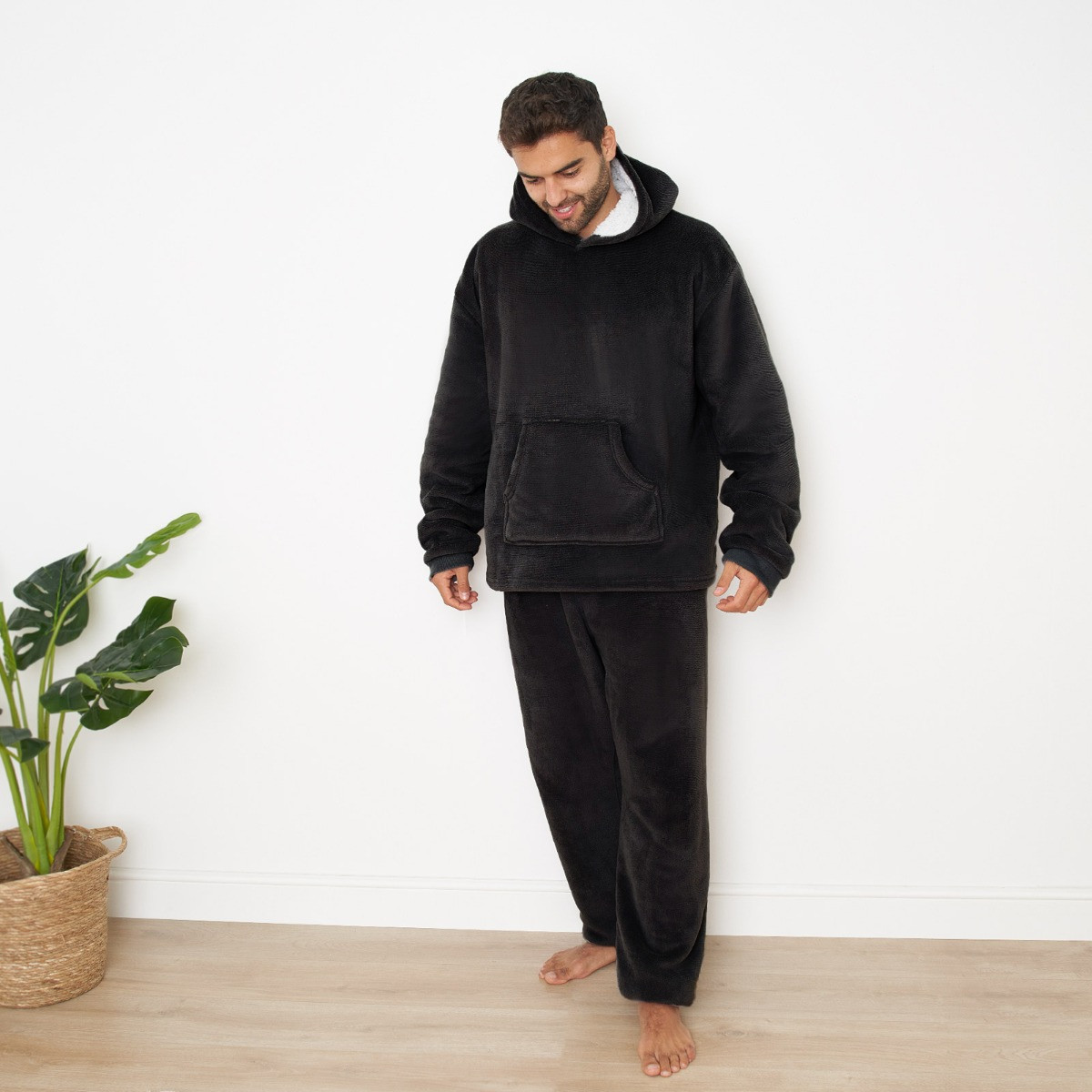Comfy, stylish and snuggly, our coral fleece pyjama set from the OHS range is soft and cosy, making it perfect for lounging around, for use as nightwear, or even for the ultimate working from home look. This item included a hooded jumper top, and a jogger style bottom, both with soft coral fleece outer layer, and a cosy sherpa fleece lining. The joggers have an elasticated waist and cuffs, while the top has a hood, large front pocket, and finished with elasticated cuffs.