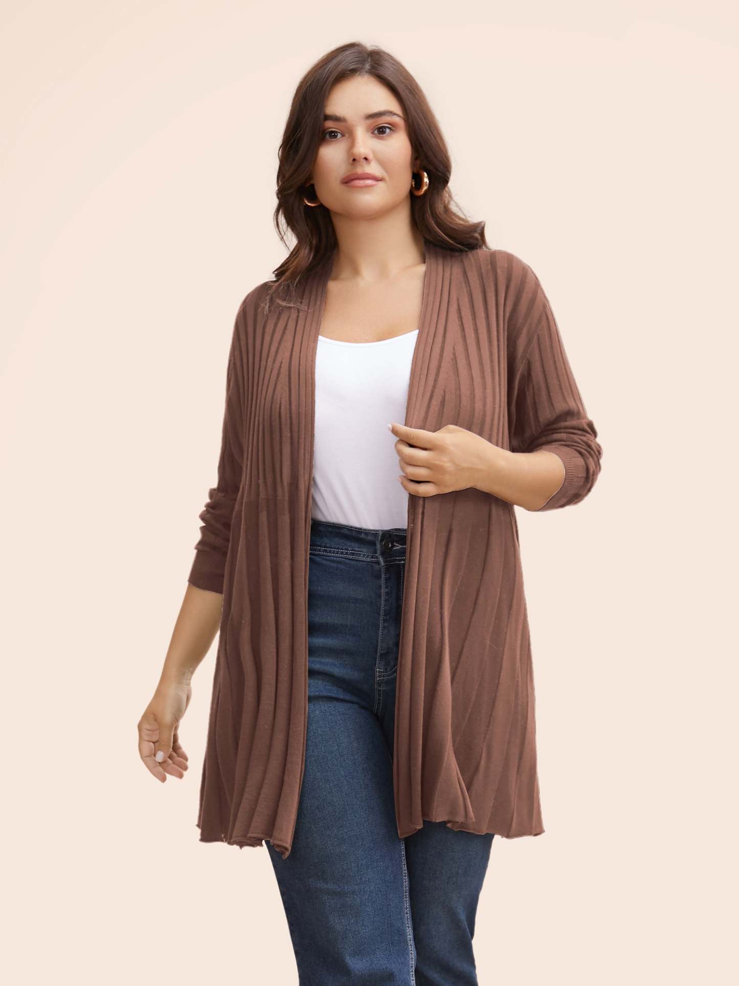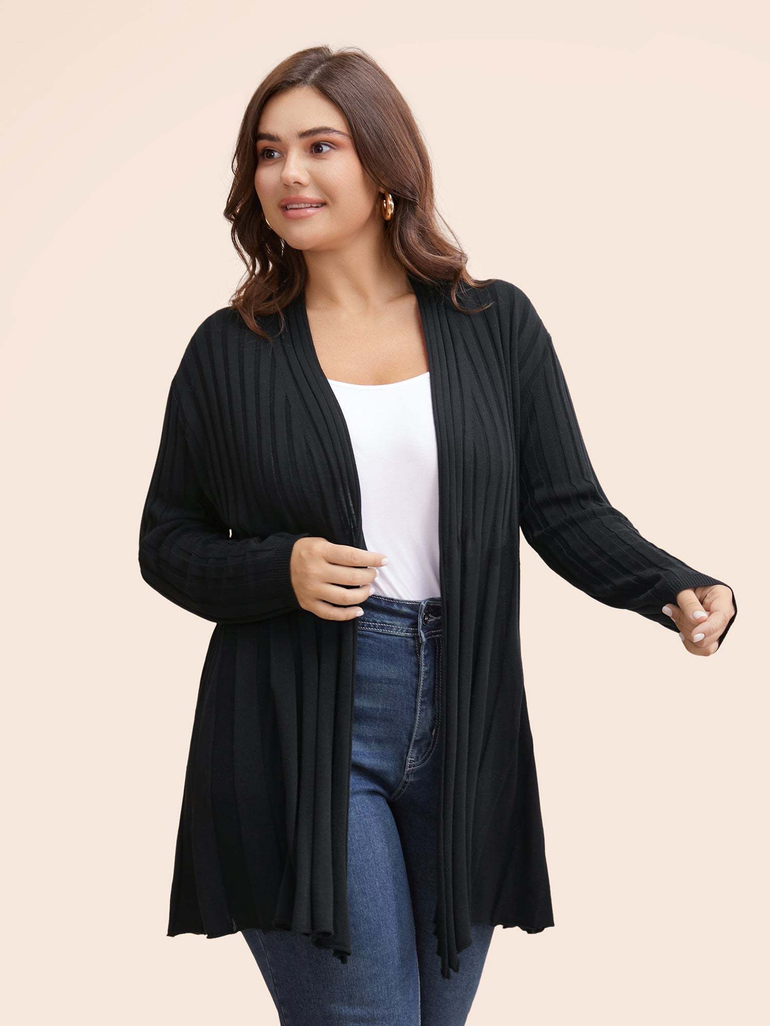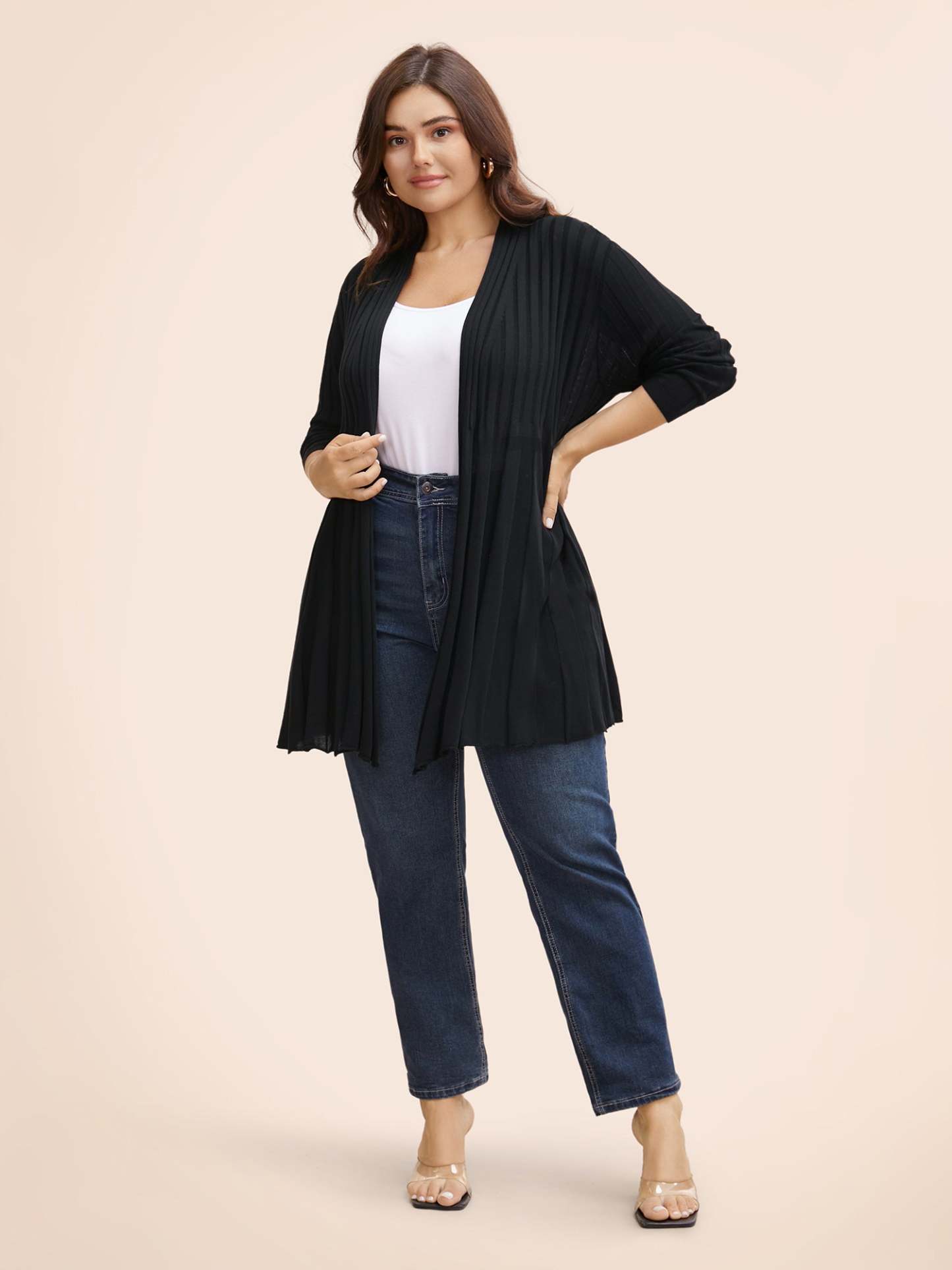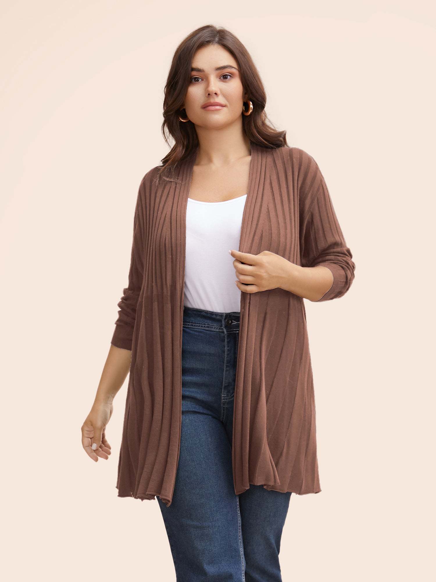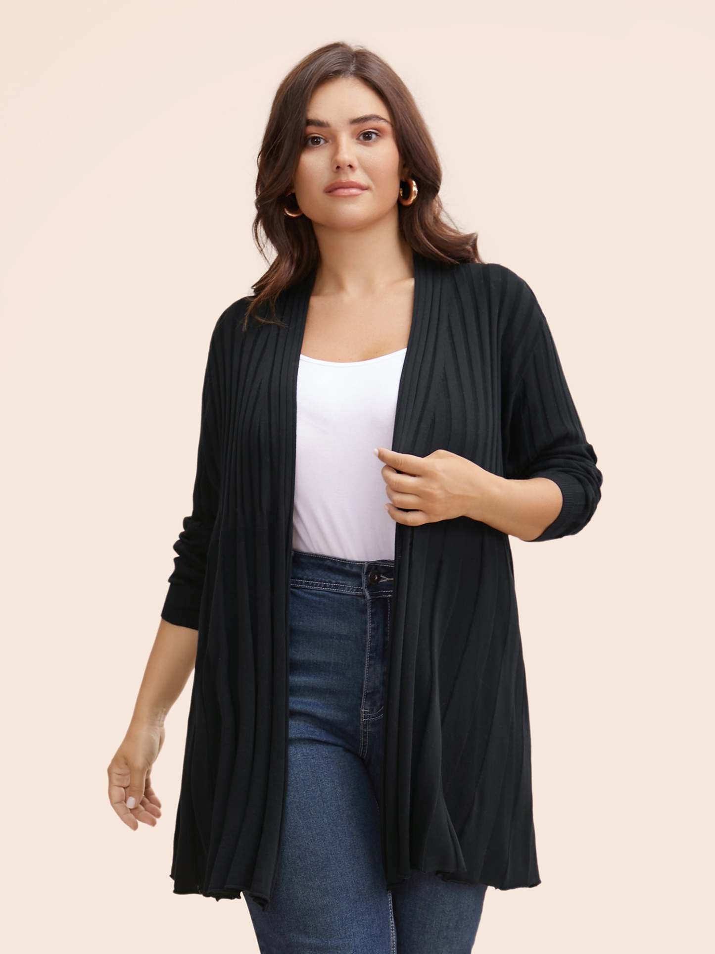 Plain Textured Kimono Collar Cardigan
