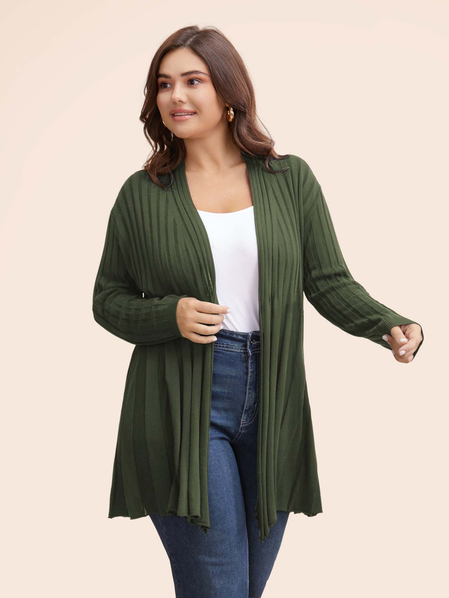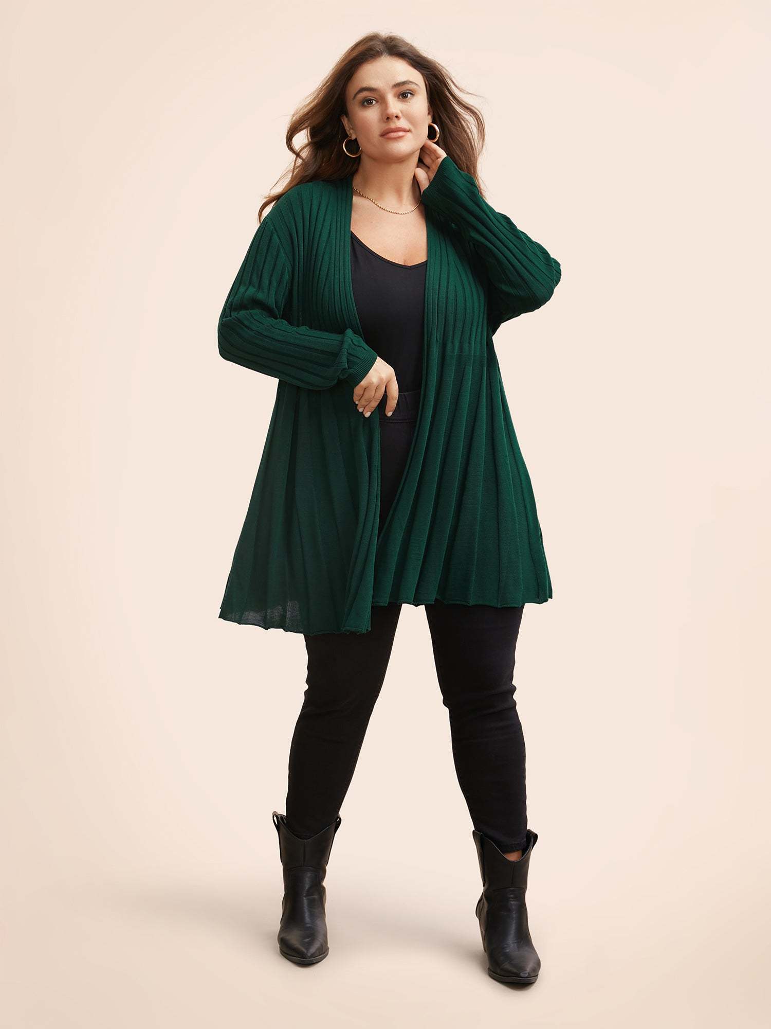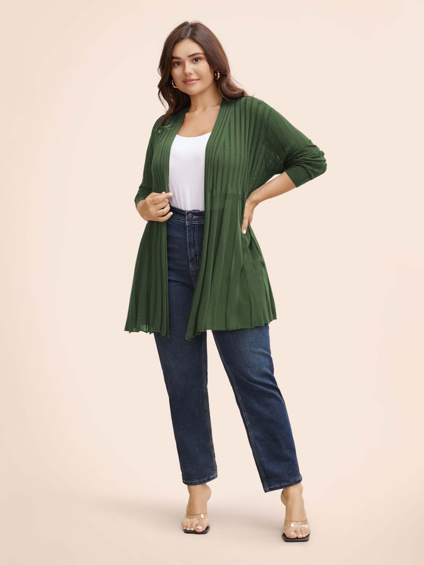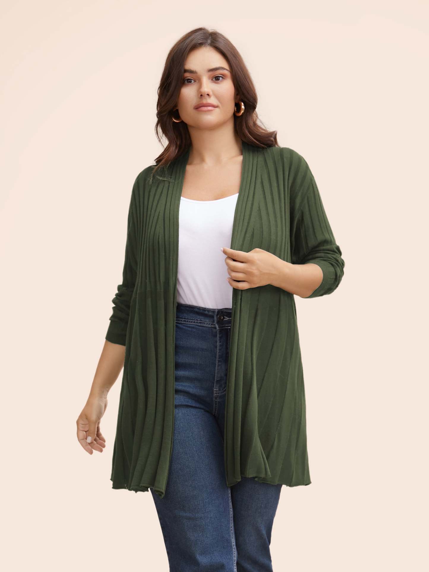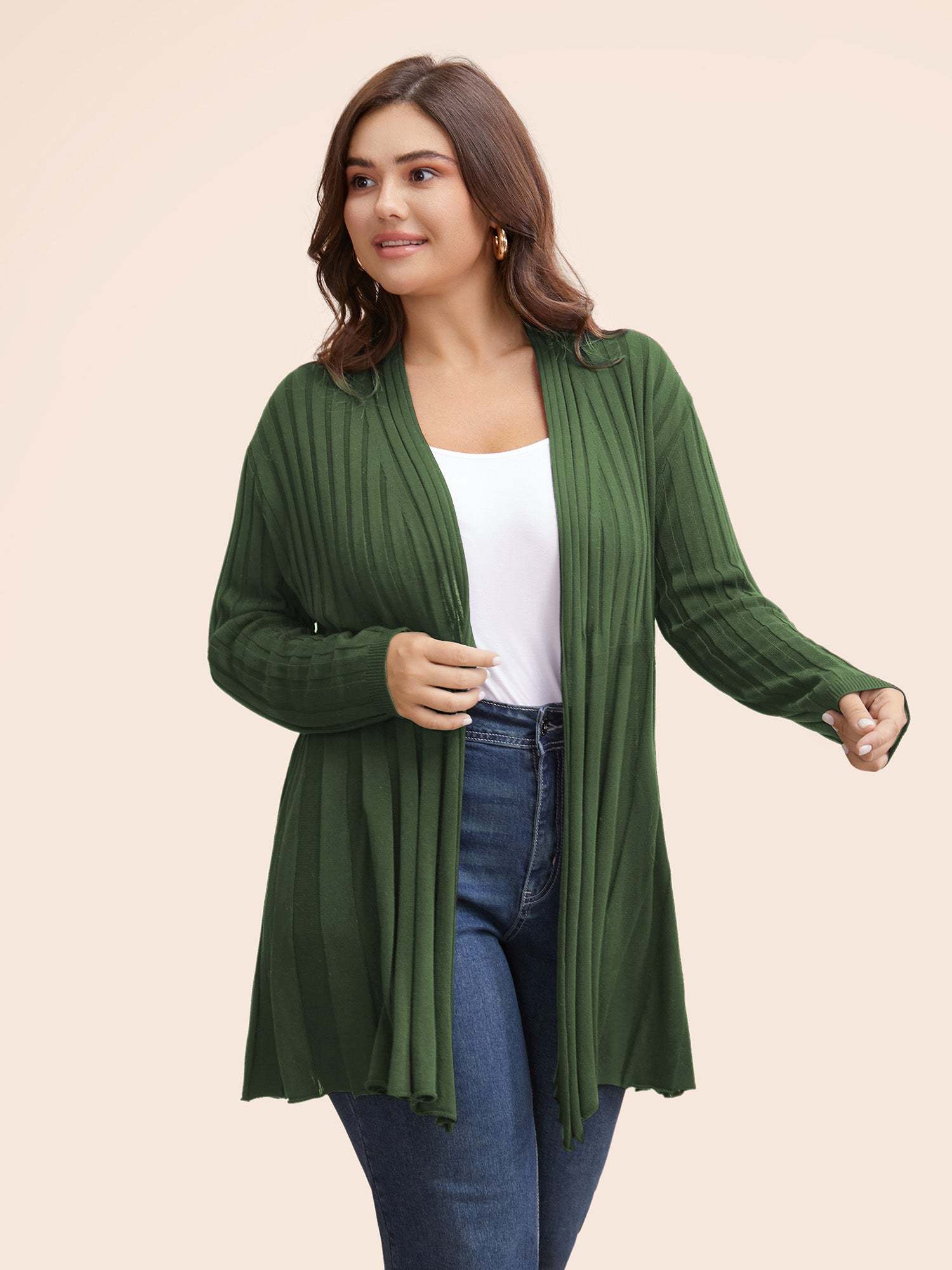 Plain Textured Kimono Collar Cardigan