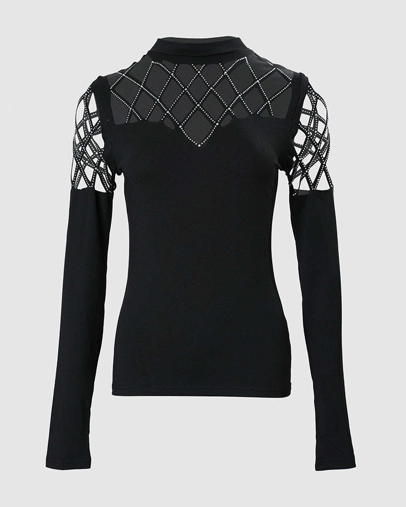 Styling & Pairing: This versatile top can be paired with high-waist jeans, skirts, leather pants, or tailored trousers for both casual and chic looks. Layer it under a blazer or a leather jacket for extra style points, or wear it alone to let the rhinestone and hollow-out details stand out.