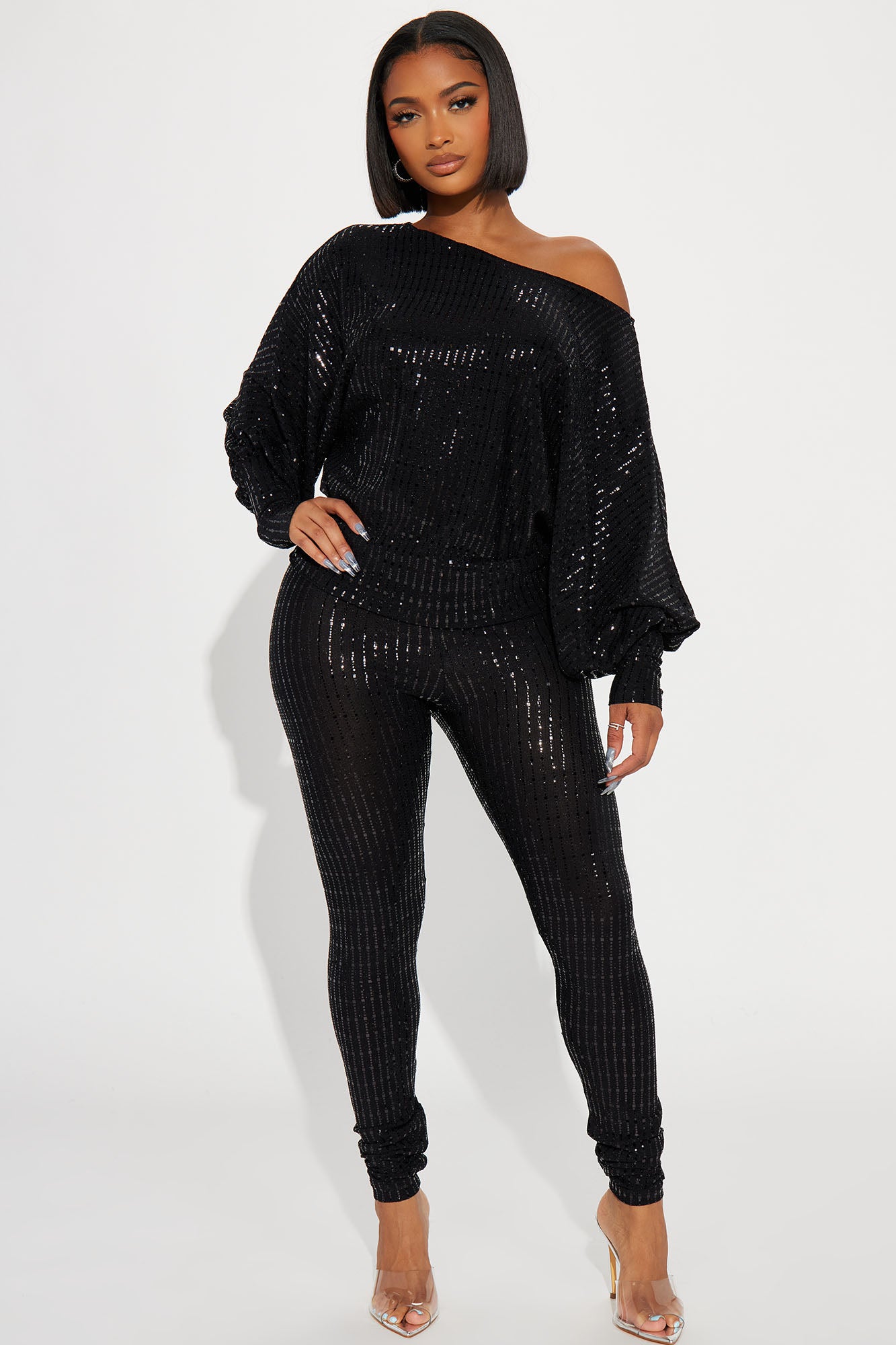 Shining Star Off Shoulder Set - Black