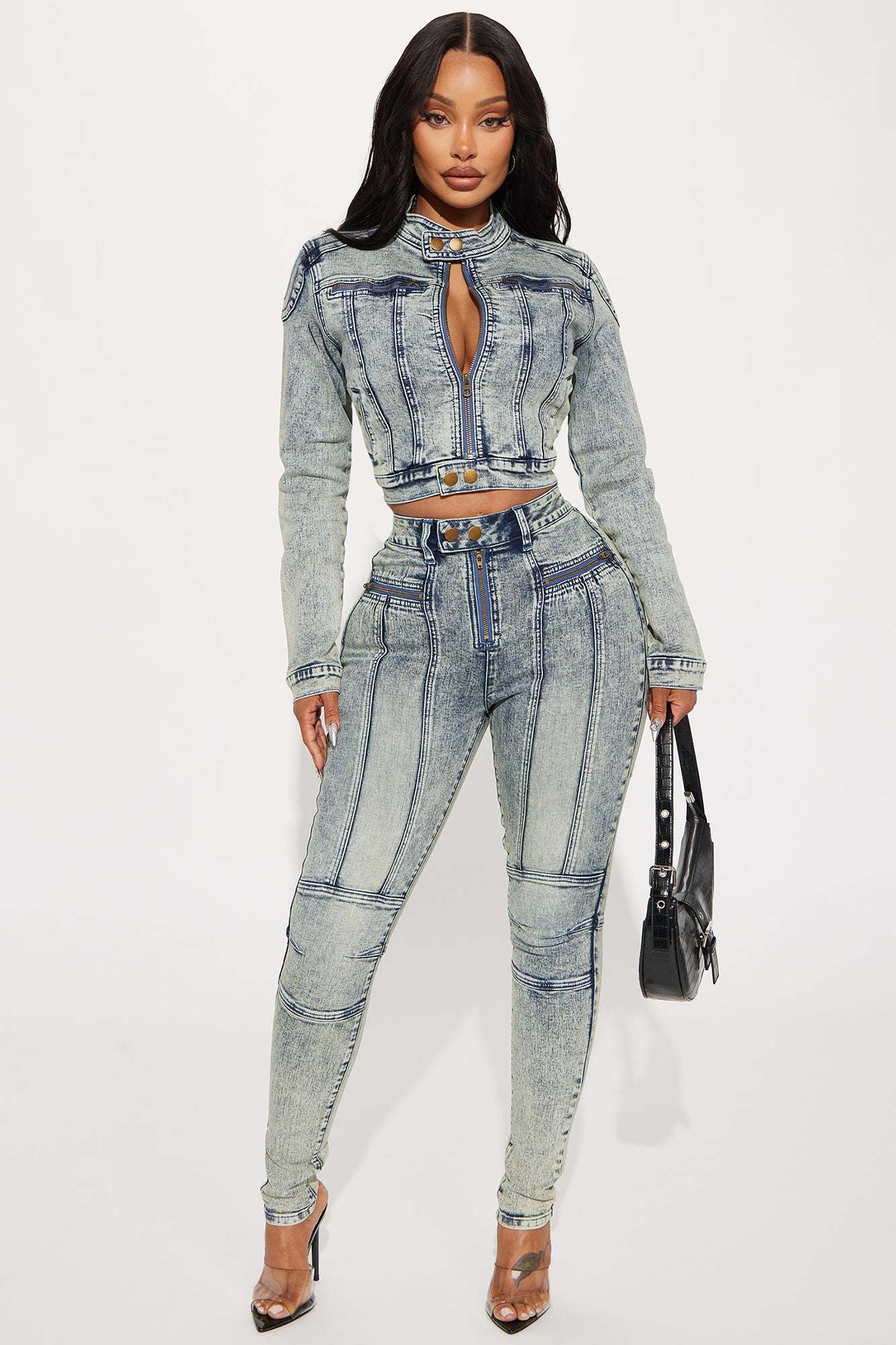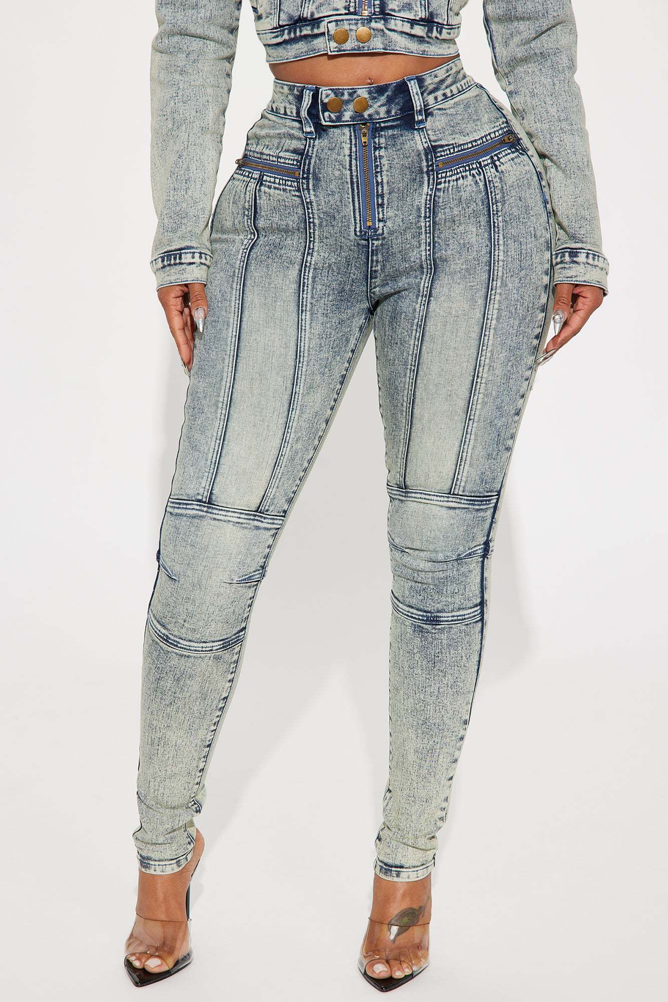 Starting Rumors Stretch Moto Skinny Jeans - Vintage Wash