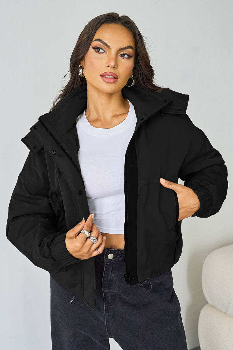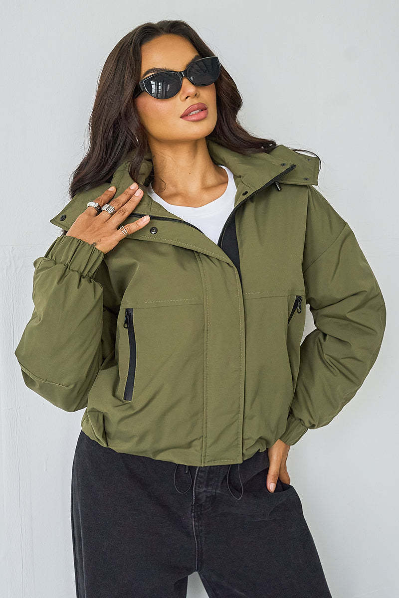 Street Stand Collar Hooded Zip-Up Trench Coat With Toggle