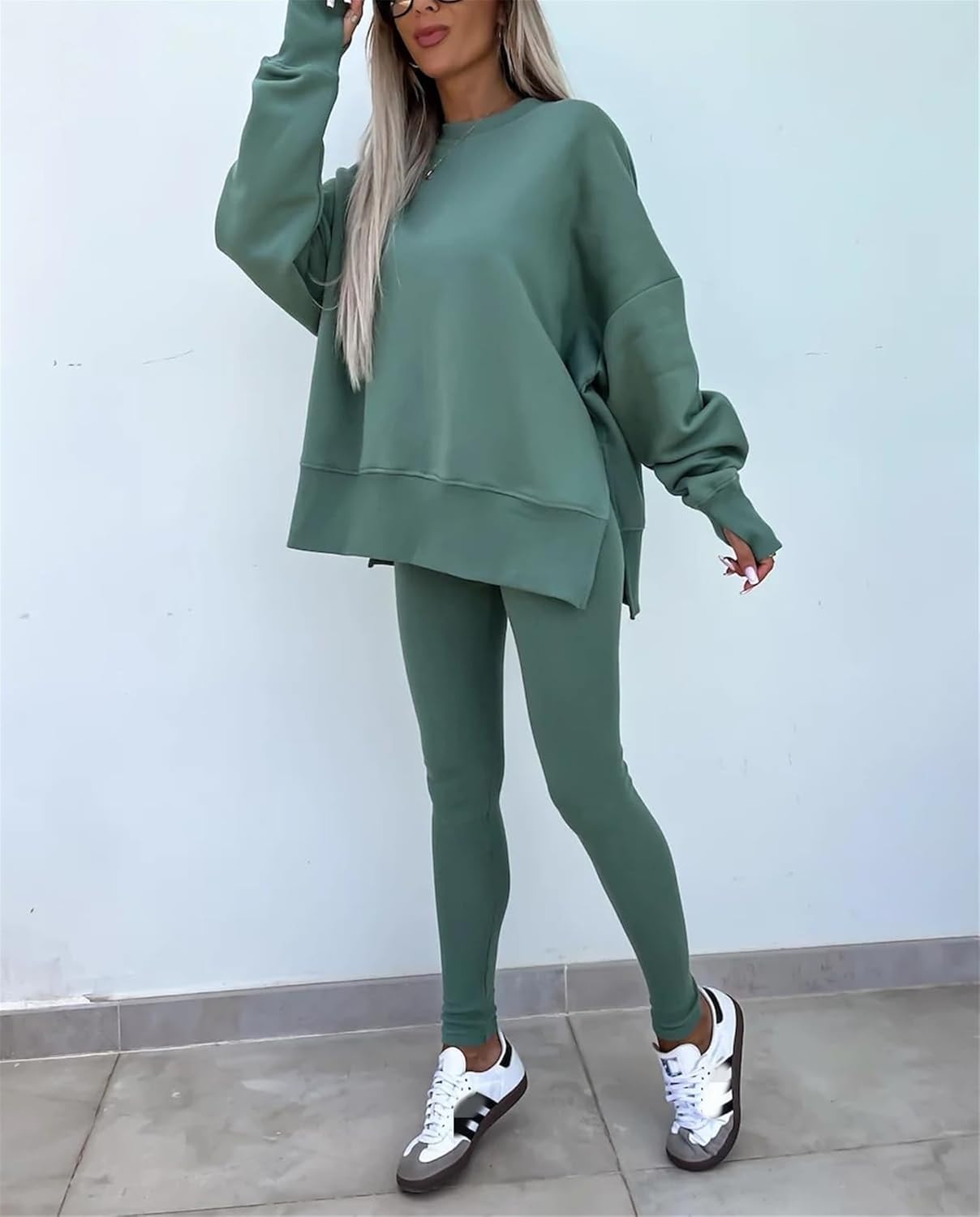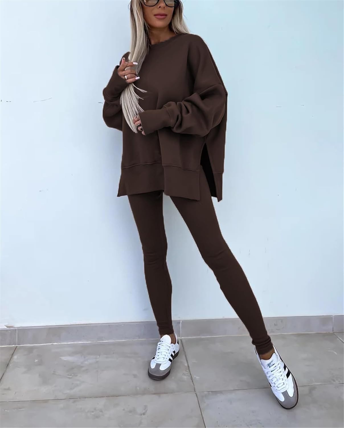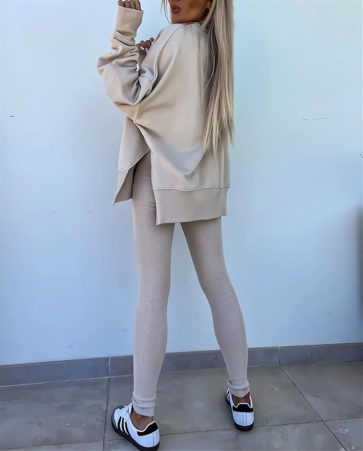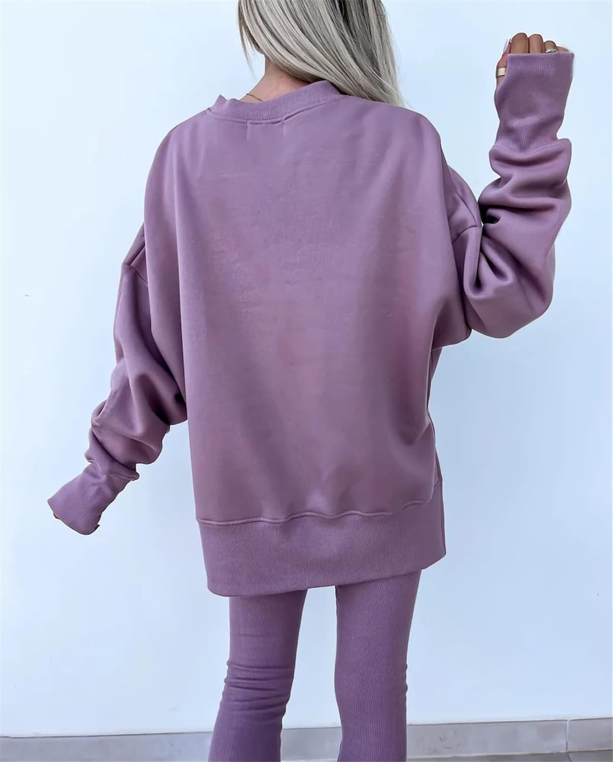 Women's Solid Drop Shoulder Sweatshirt & Elastic Waist Pants Two-Piece Set, Casual Fashion Cozy Long Sleeve Pullover & Skinny Trousers for Daily Outdoor Wear, Fall outfit
