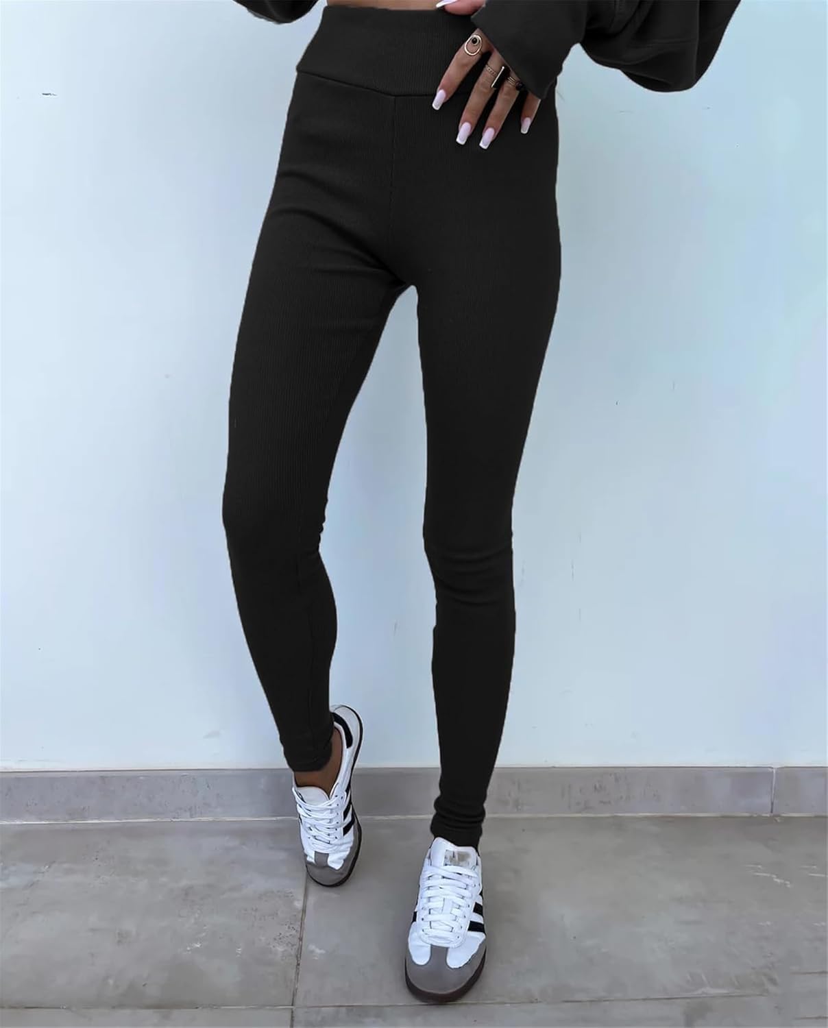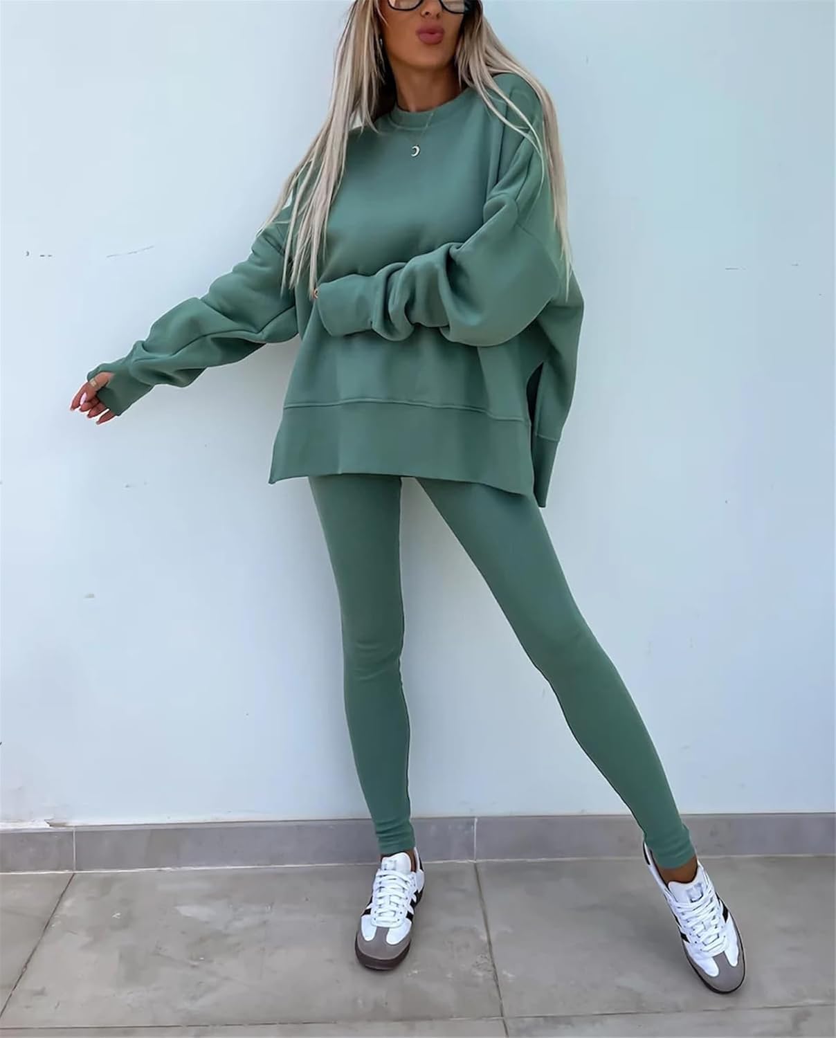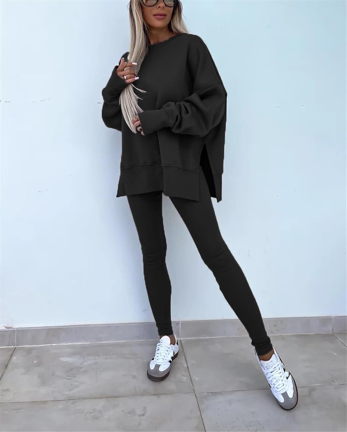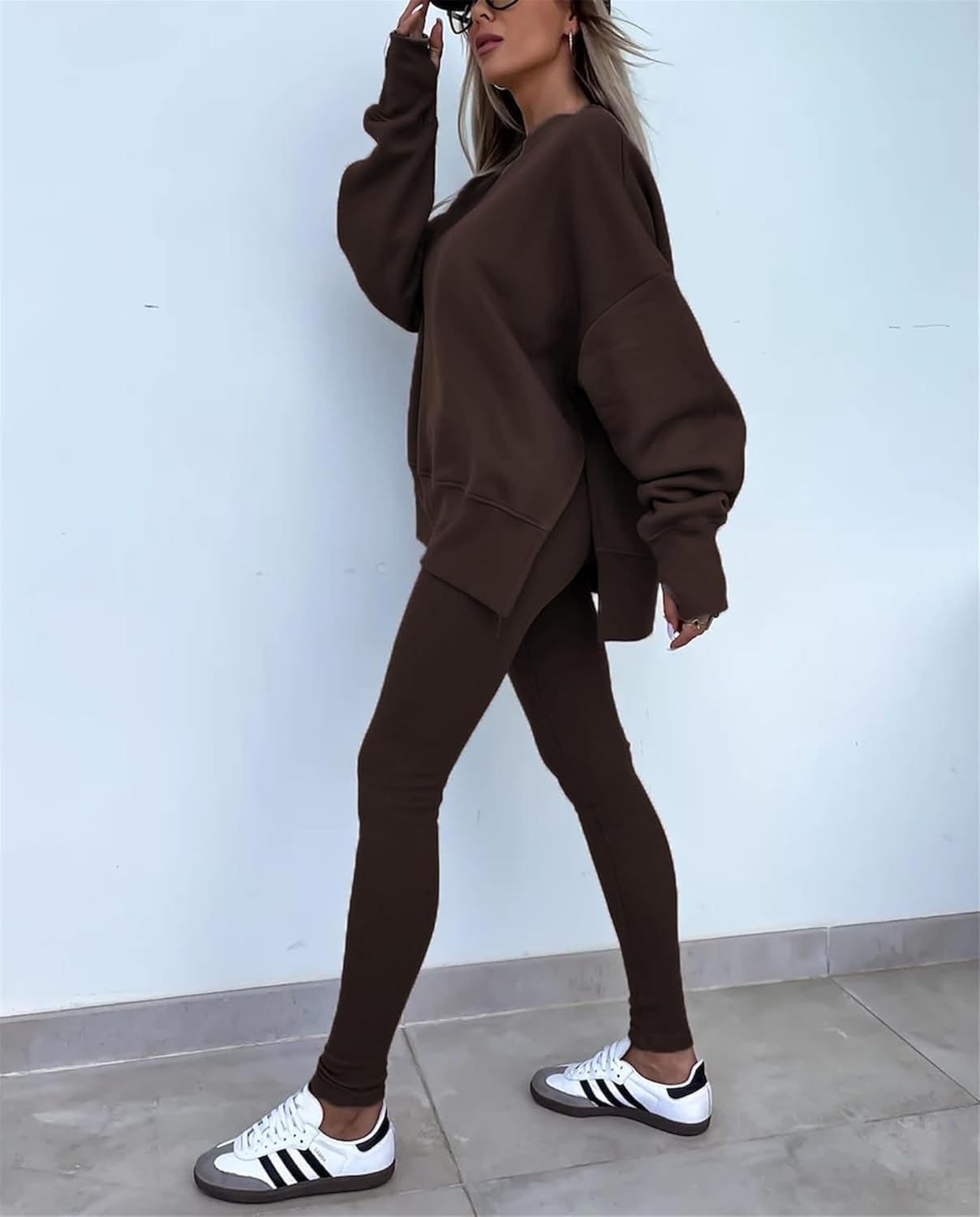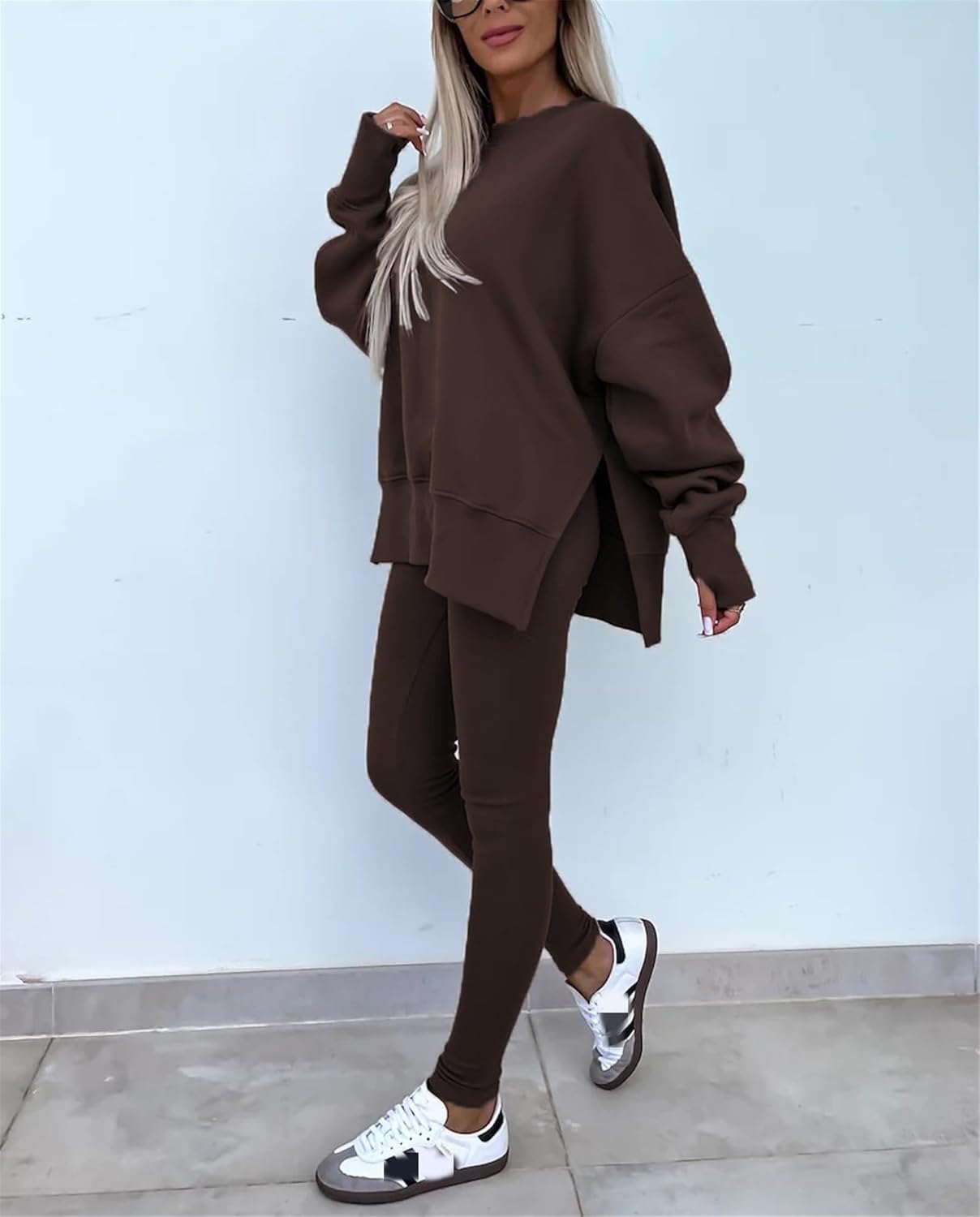 Women's Solid Drop Shoulder Sweatshirt & Elastic Waist Pants Two-Piece Set, Casual Fashion Cozy Long Sleeve Pullover & Skinny Trousers for Daily Outdoor Wear, Fall outfit