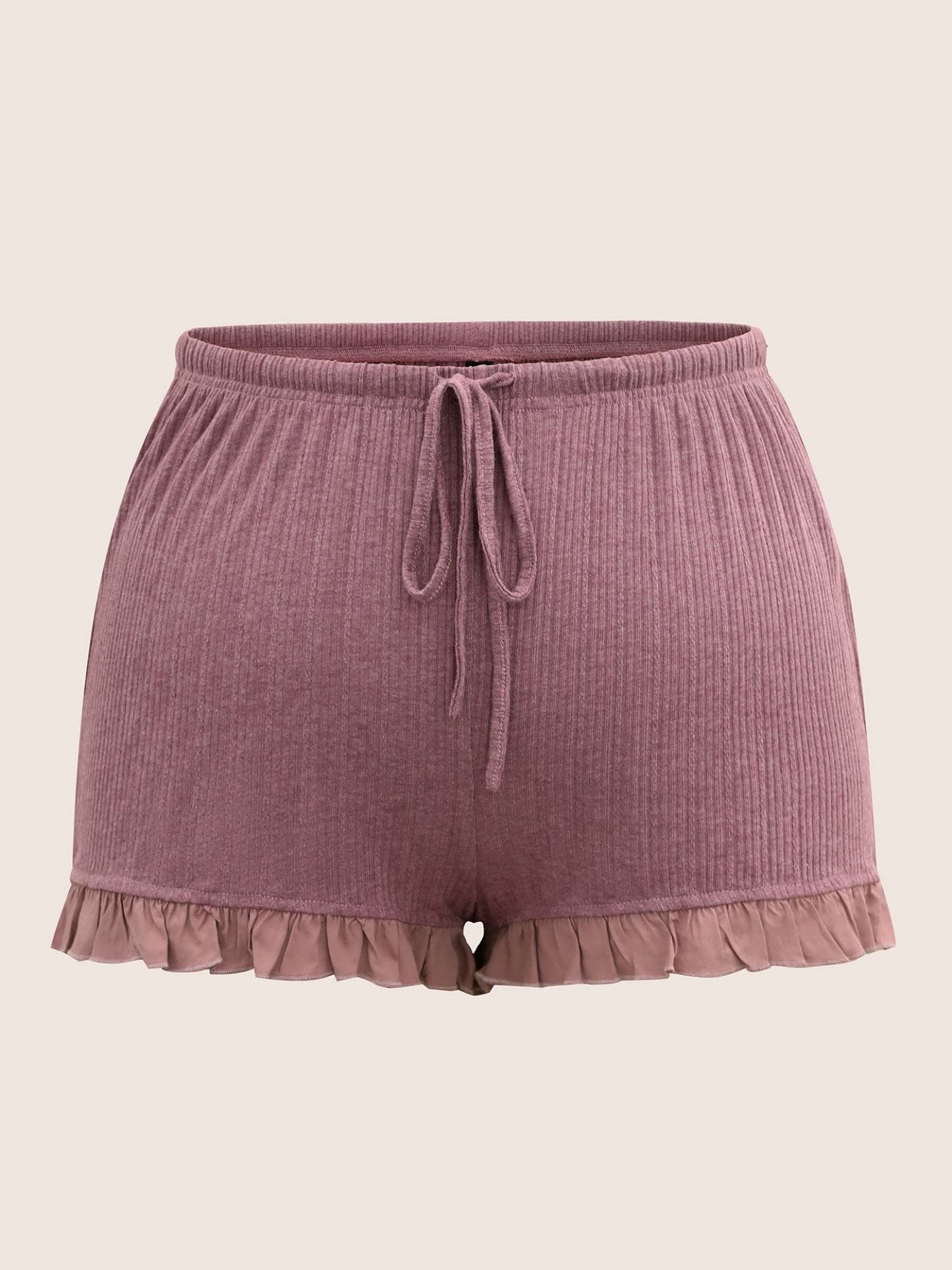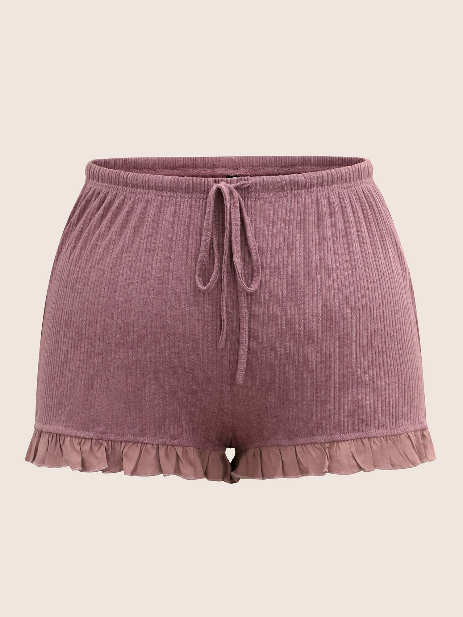 Texture Patchwork Ruffles Drawstring Loungewear Set