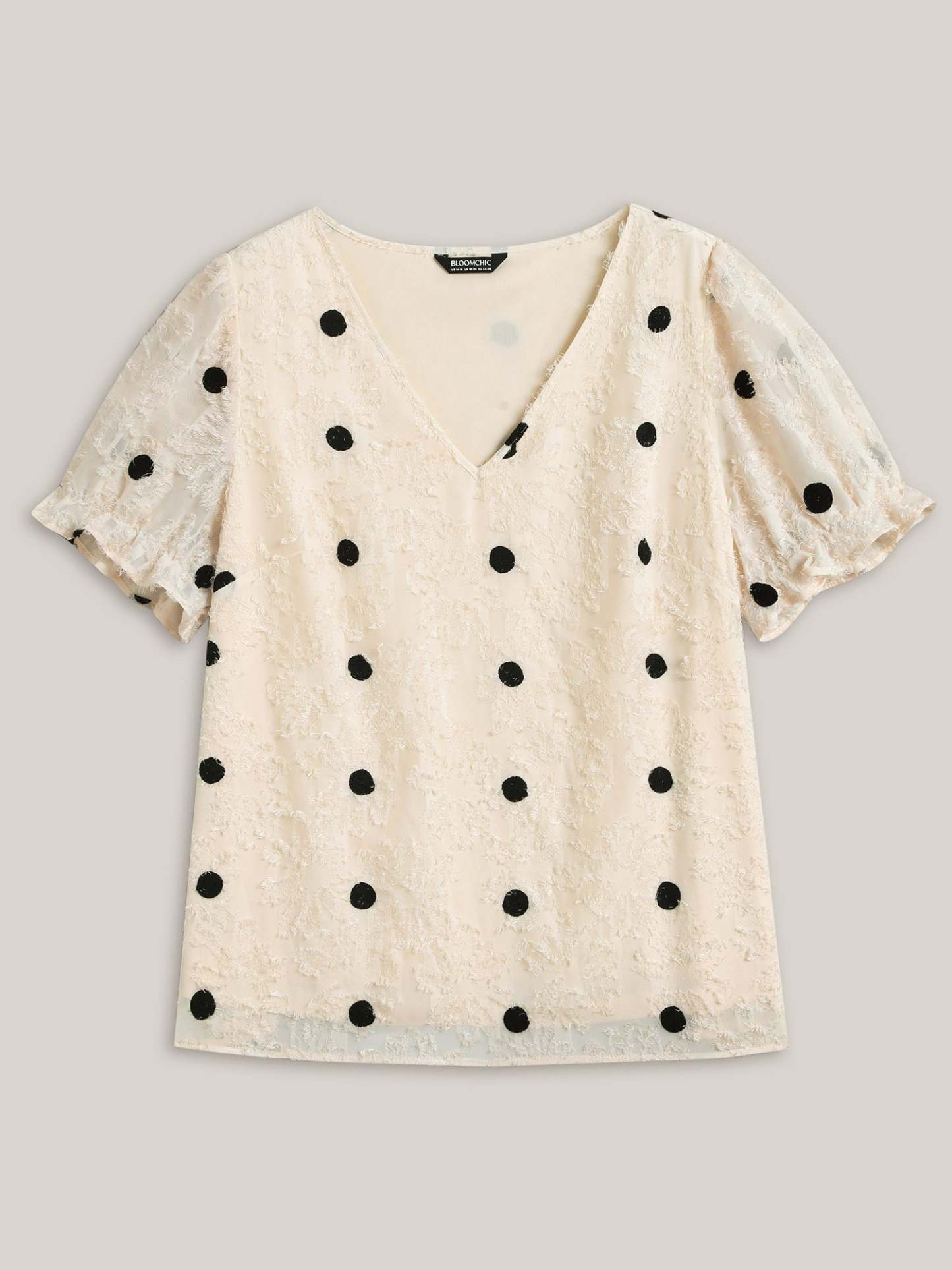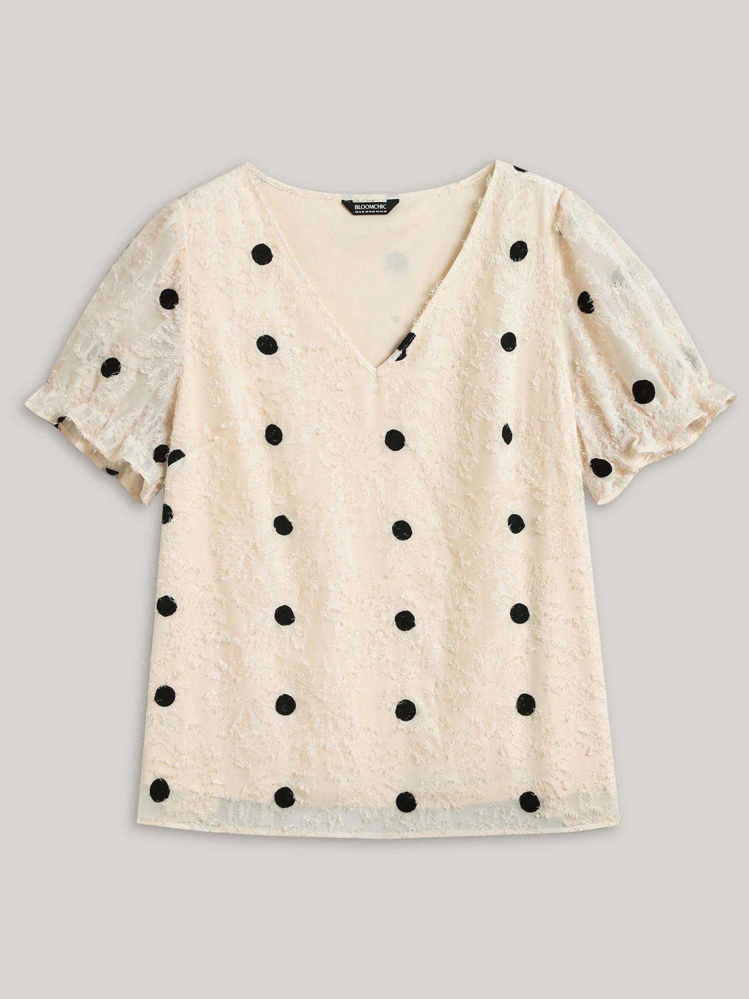Textured Dots V-Neck Puff Sleeve Blouse