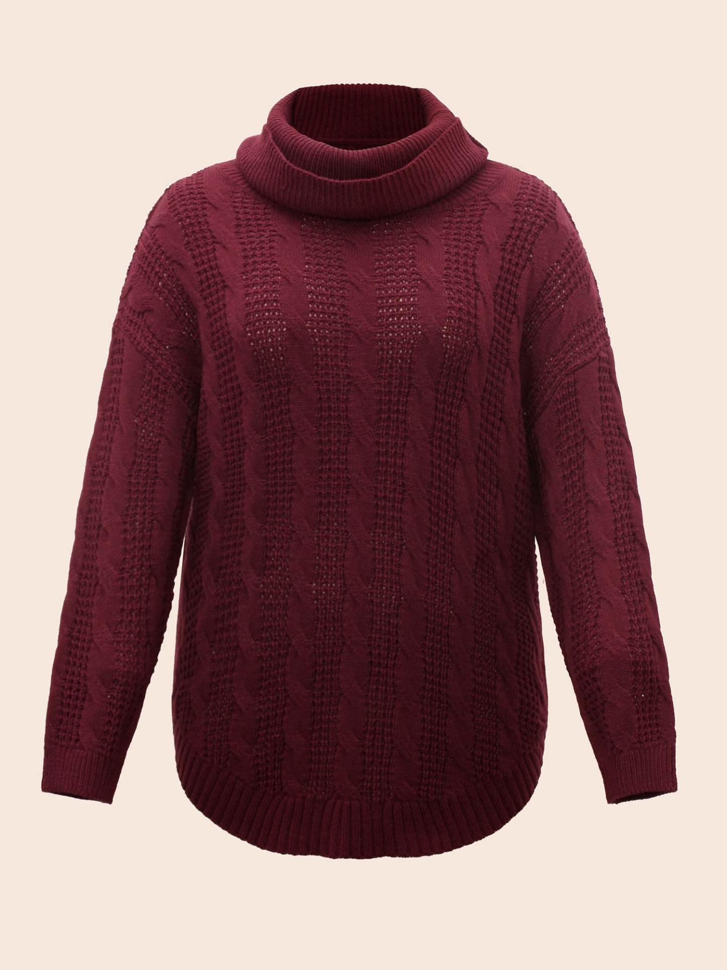 Turtleneck Cable Knit Curved Hem Pullover