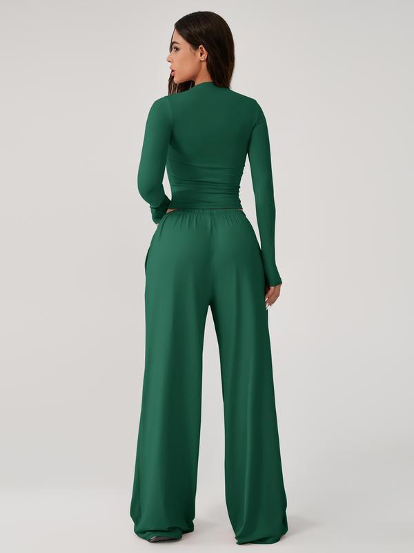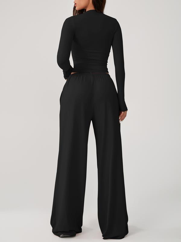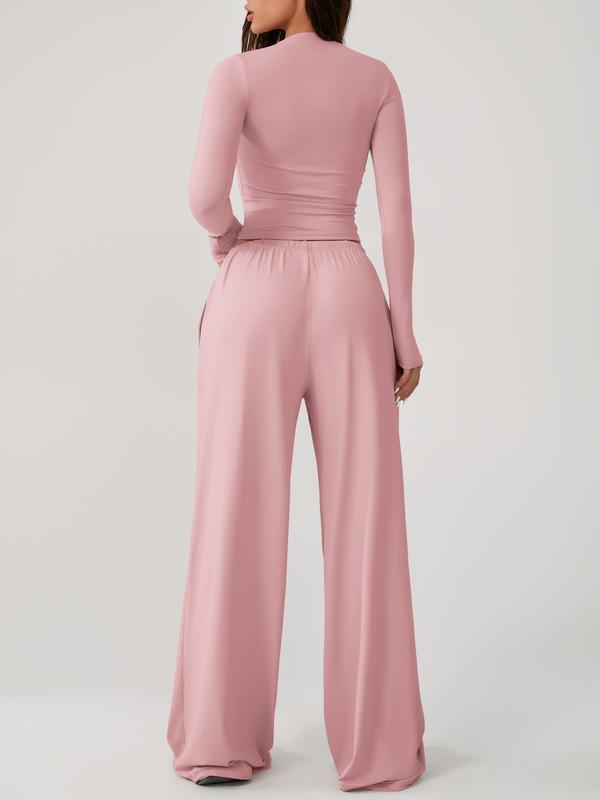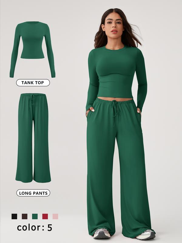 Two Piece Set Women's Home Clothing Set Soft and Skin Friendly Long Sleeved T-shirt Loose and Wide Leg Pants with Adjustable Drawstring Daily Leisure Travel Airport Travel Home Wear Women's Pajamas Set, Womenswear