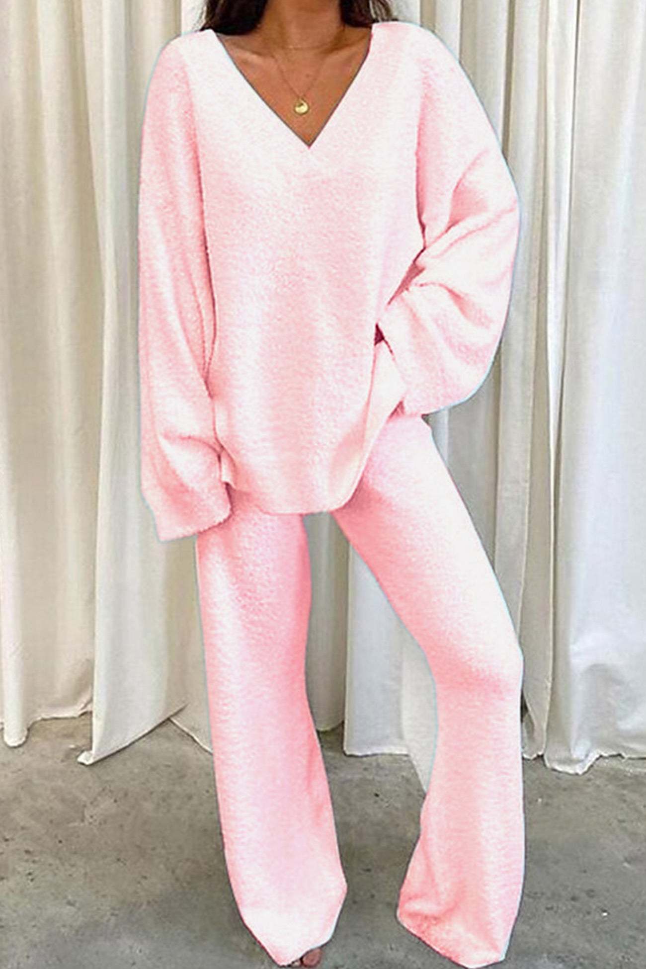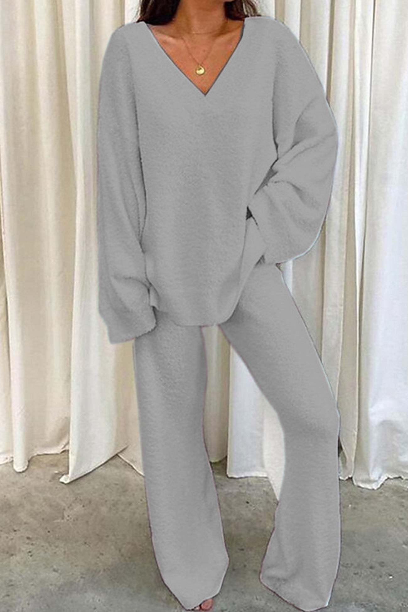 V Neck Solid Slit Hem Loungewear