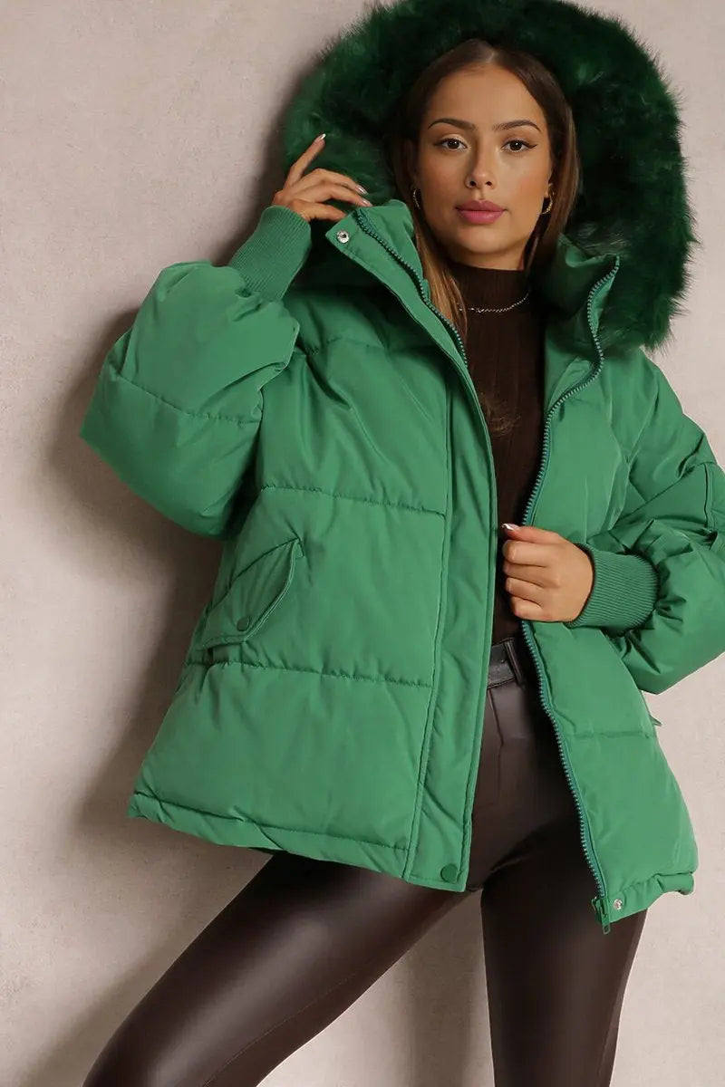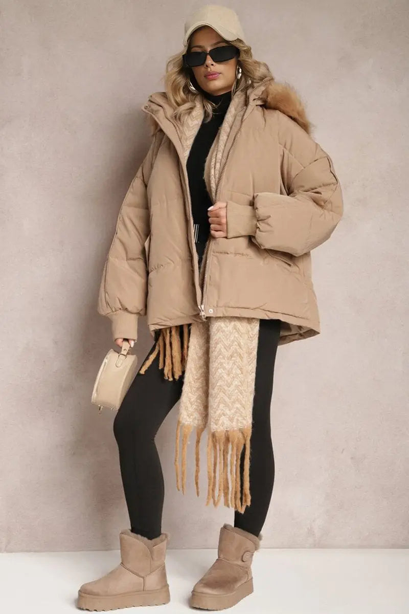 Premium Women's Oversize Plush Hooded Zip-Up Thermal Cotton Coat,Fall & Winter Womenswear,Stylish Long Sleeve Flap Pocket Zipper Outerwear Jacketl