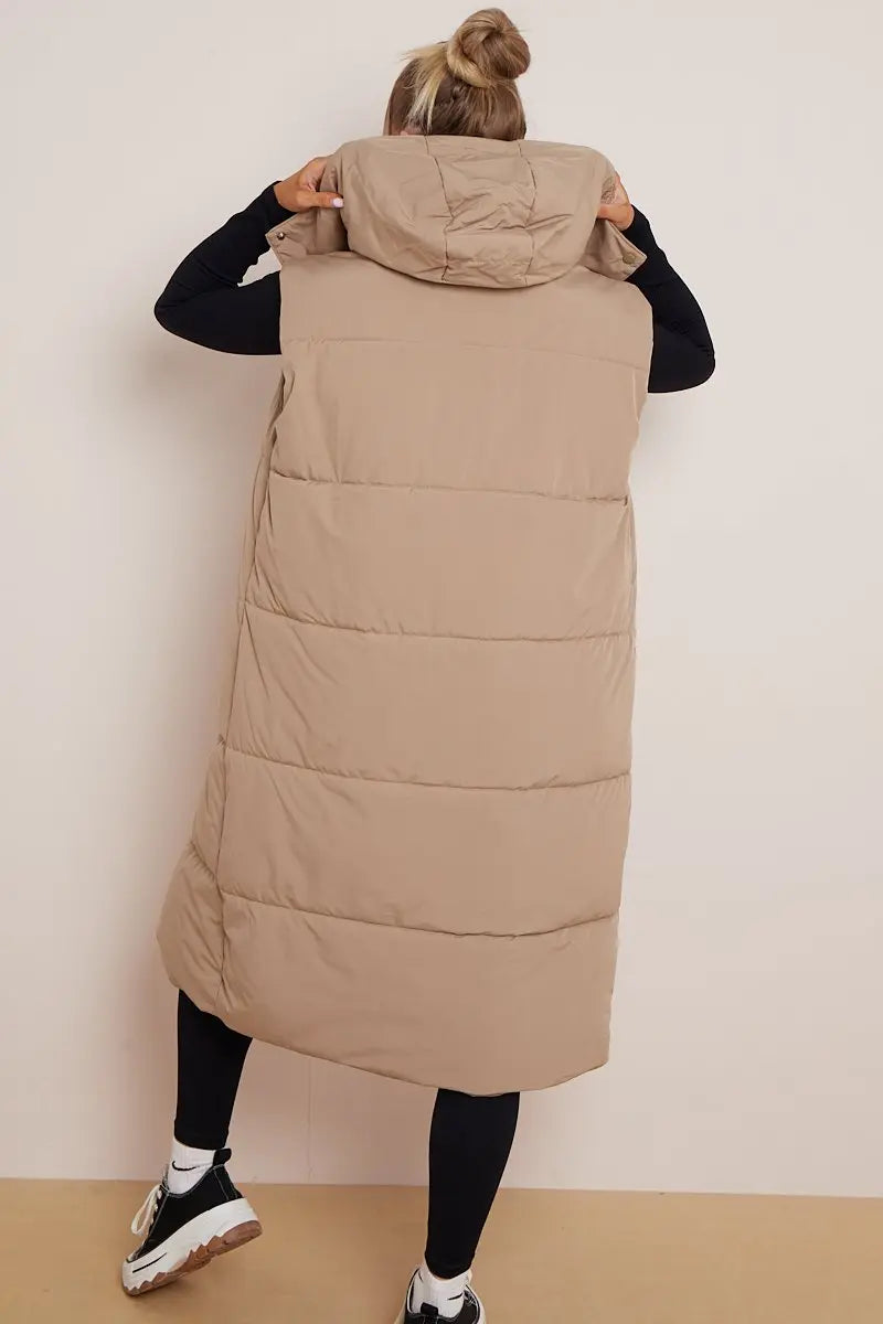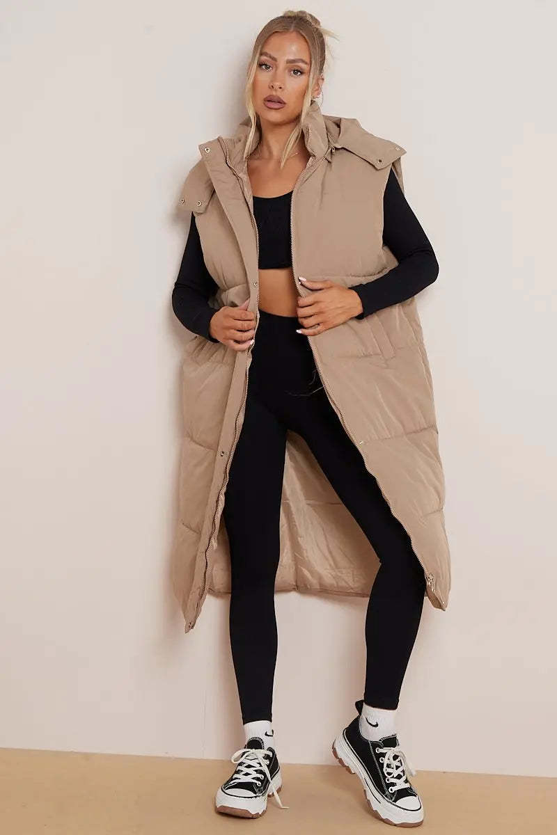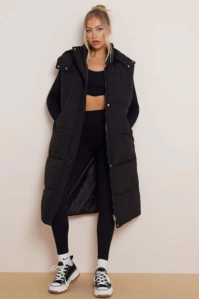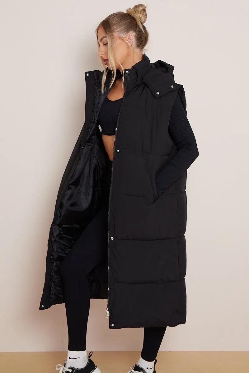 Versatile Waist Tie Hooded Zip-Up Thermal Gilet