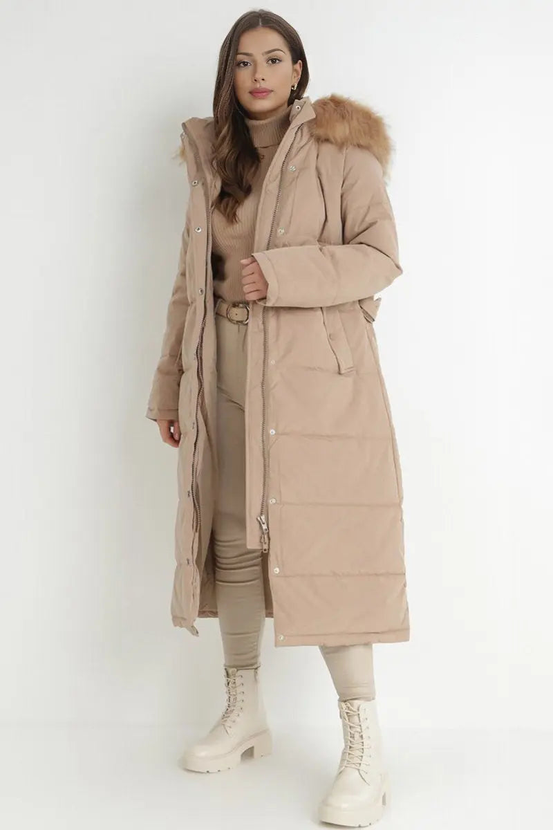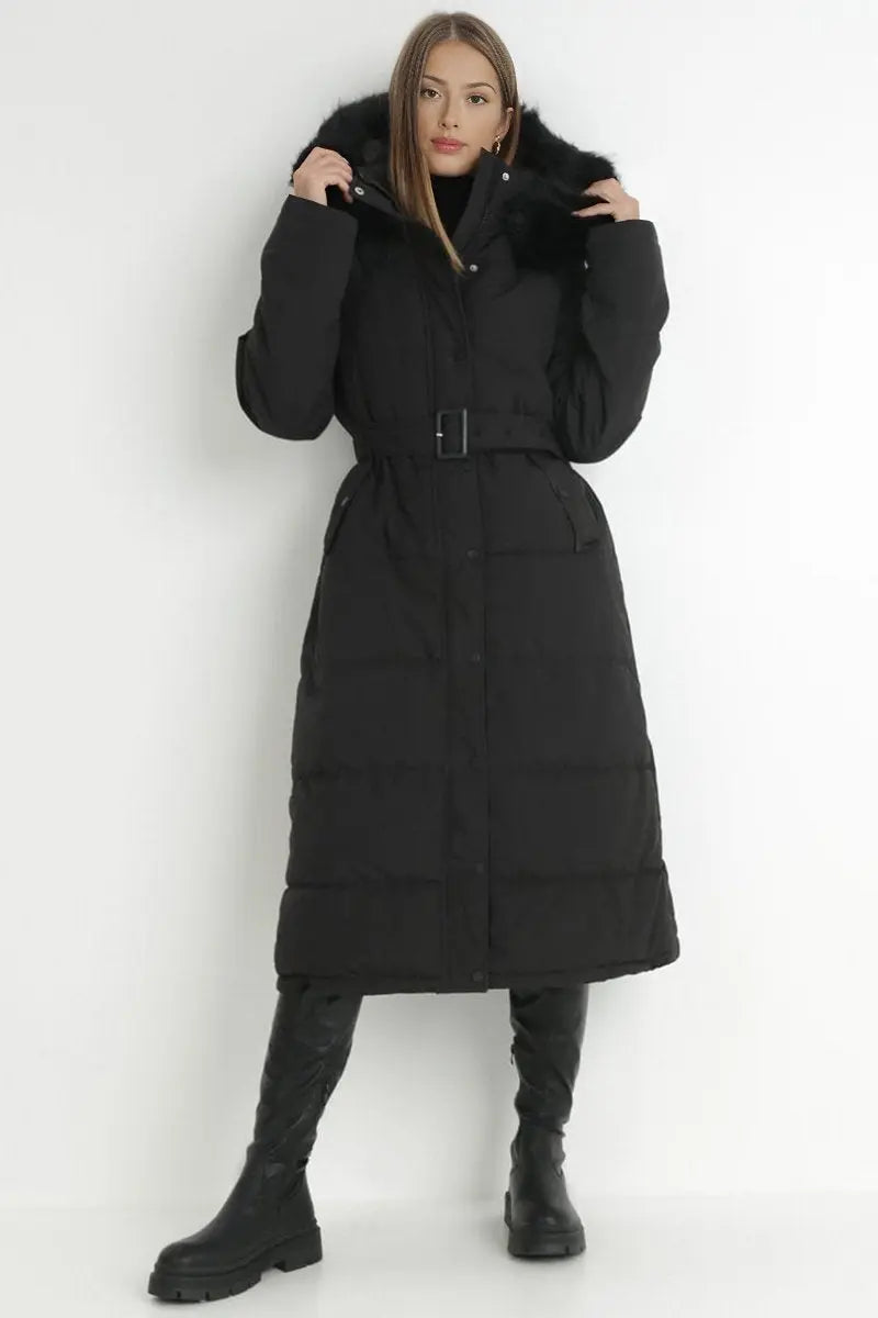 Winter Plush Hooded Belt Decor Thermal Cotton Coat