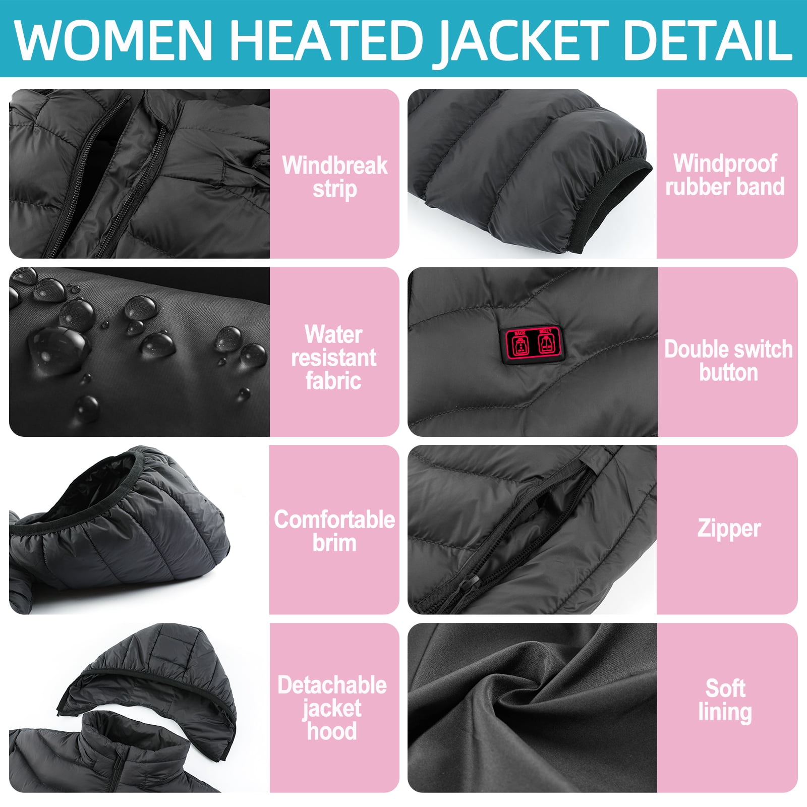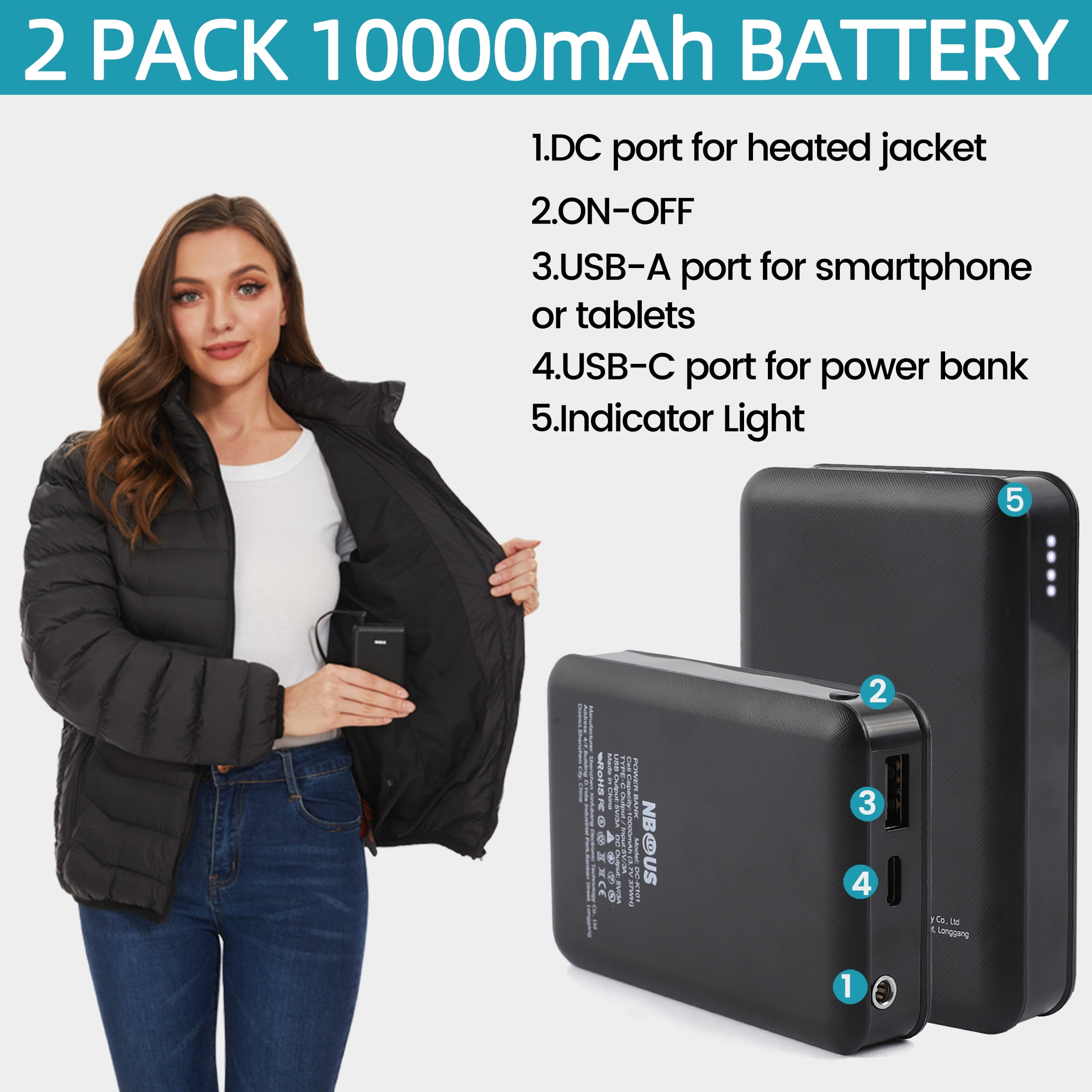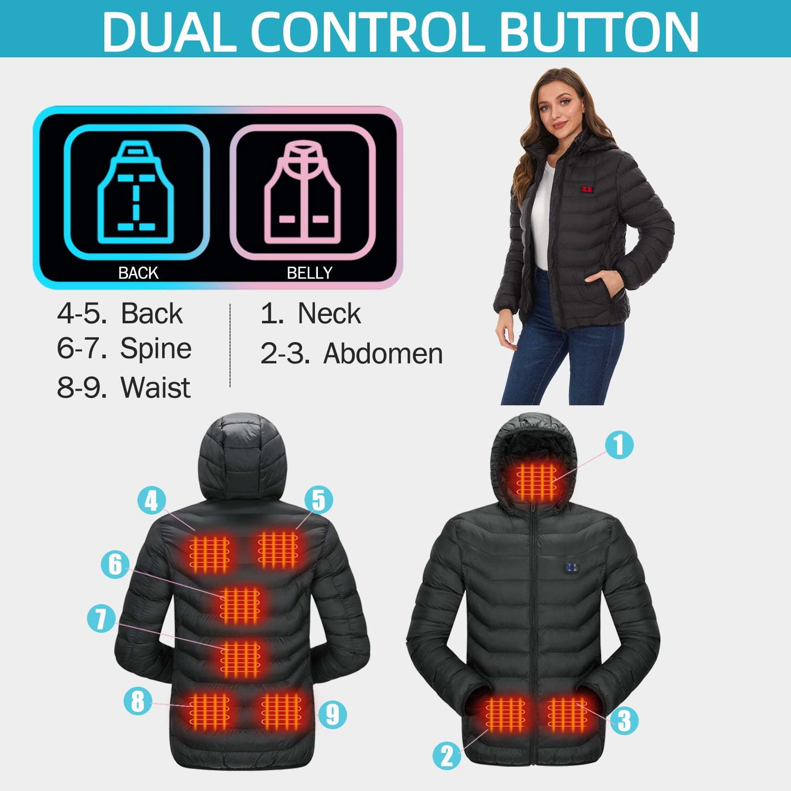 Women's Heated Jacket with 2pcs 10000mAh Power Banks | 9 Heating Zones | EU Plug Compatible