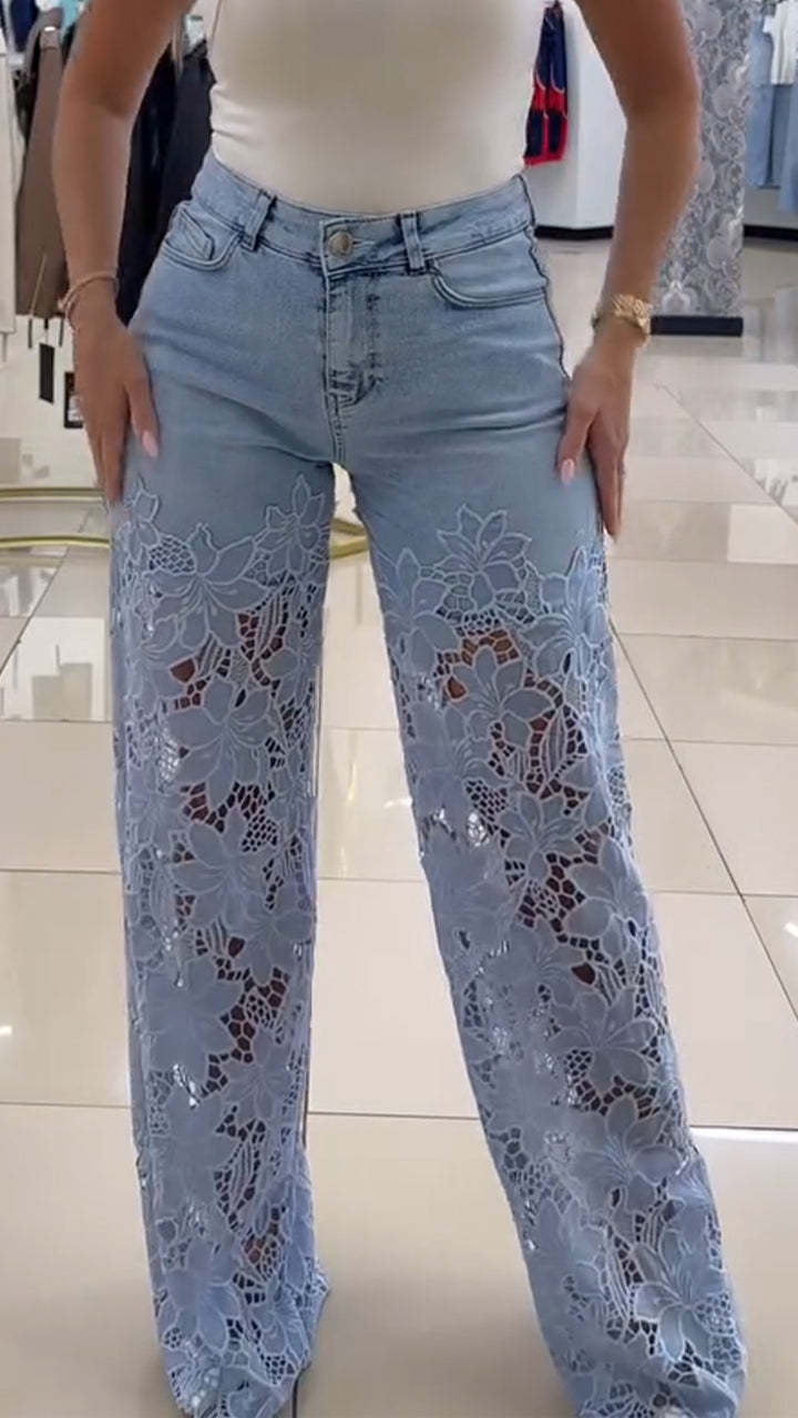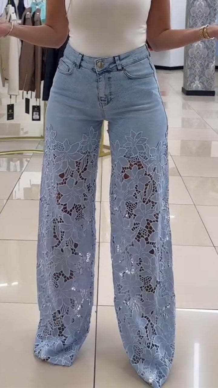 Women's Lace Patchwork Hollow Jeans