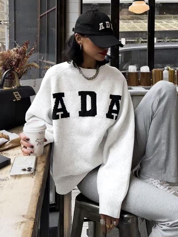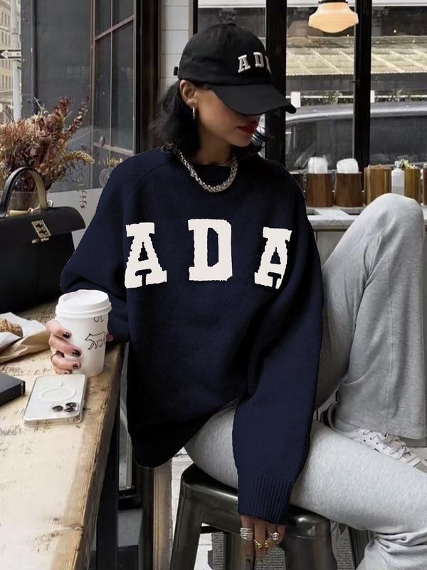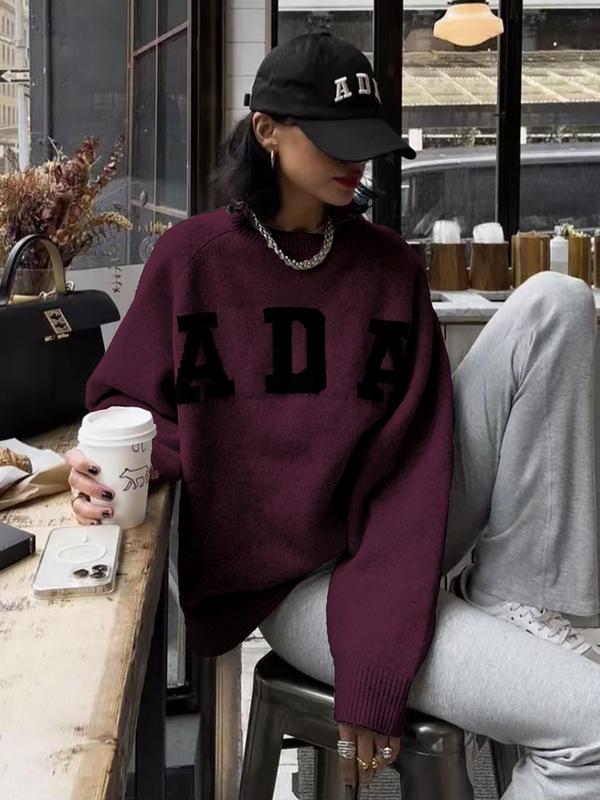 Women's Long Sleeve Knit Sweater, Loose-Fitting Round Neck Pullover, Soft Comfortable Elegant Casual Fashion Top for Fall & Winter