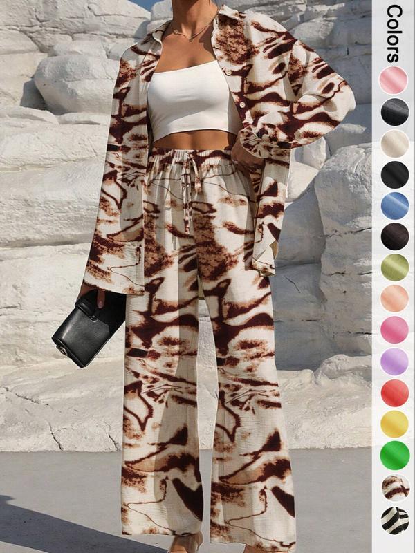 This stylish and comfortable two-piece set includes a relaxed button-up shirt and drawstring wide-leg pants, helping you effortlessly elevate your everyday style. Designed for women who value comfort, convenience, and classic style, this outfit is perfect for everyday wear, casual outings, travel, and office casual attire.